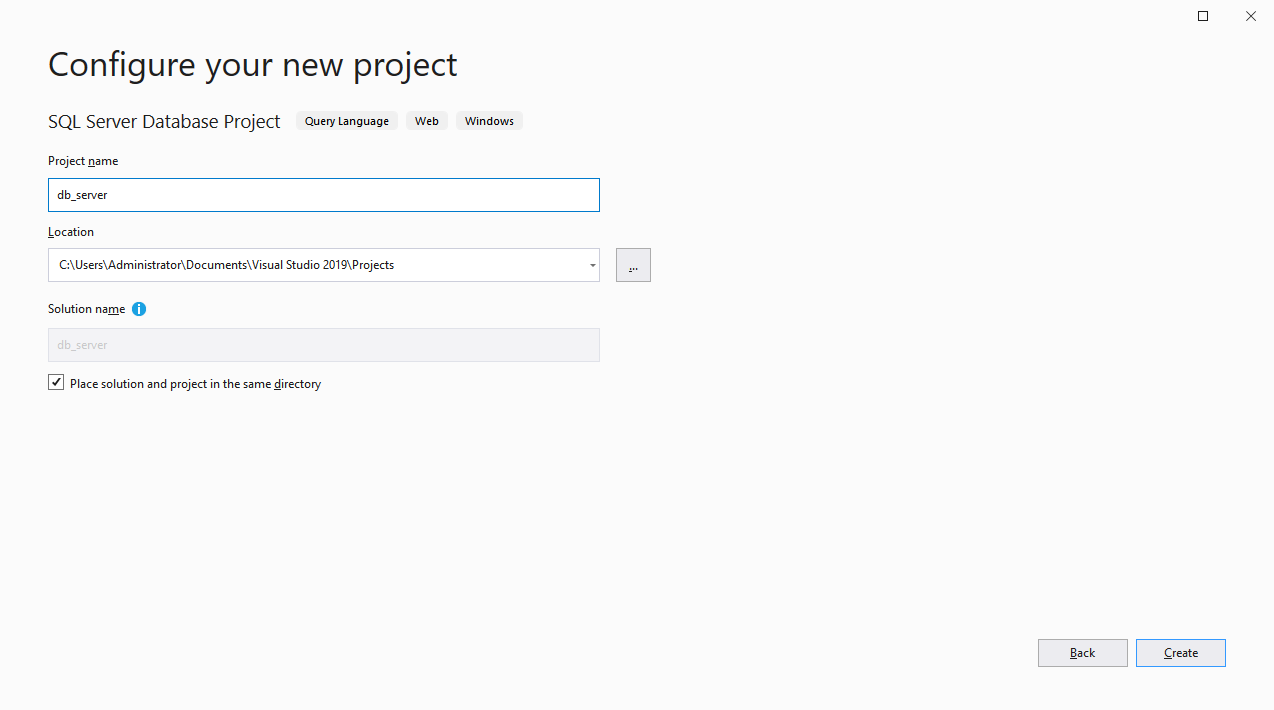 우선 Visual Studio에서 SQL Server Database Project를 생성합니다.