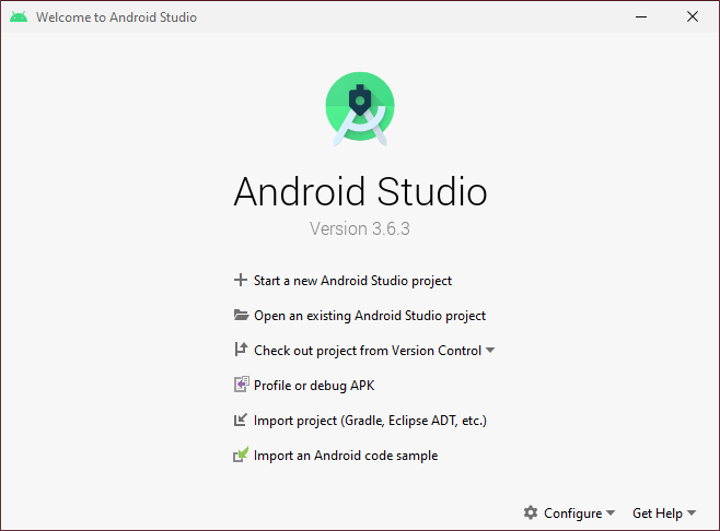 설치가 완료된 후 Android Studio가 구동되면 위와 같은 화면을 볼 수 있습니다. 'Start a new Android Studio project'를 선택합니다.