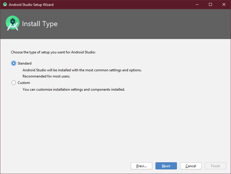 Standard를 선택하고 'Next'를 눌러주세요. Standard는 개발에 필요한 대부분의 컴포넌트를 설치합니다.