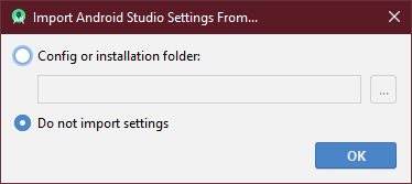 기존에 Android Studio를 사용했던 환경설정 정보를 가져올 것인지 선택하는 화면입니다. 처음 설치한 사용자에게는 필요 없으므로 'Do not import settings'를 선택하고 'OK'를 눌러주세요.