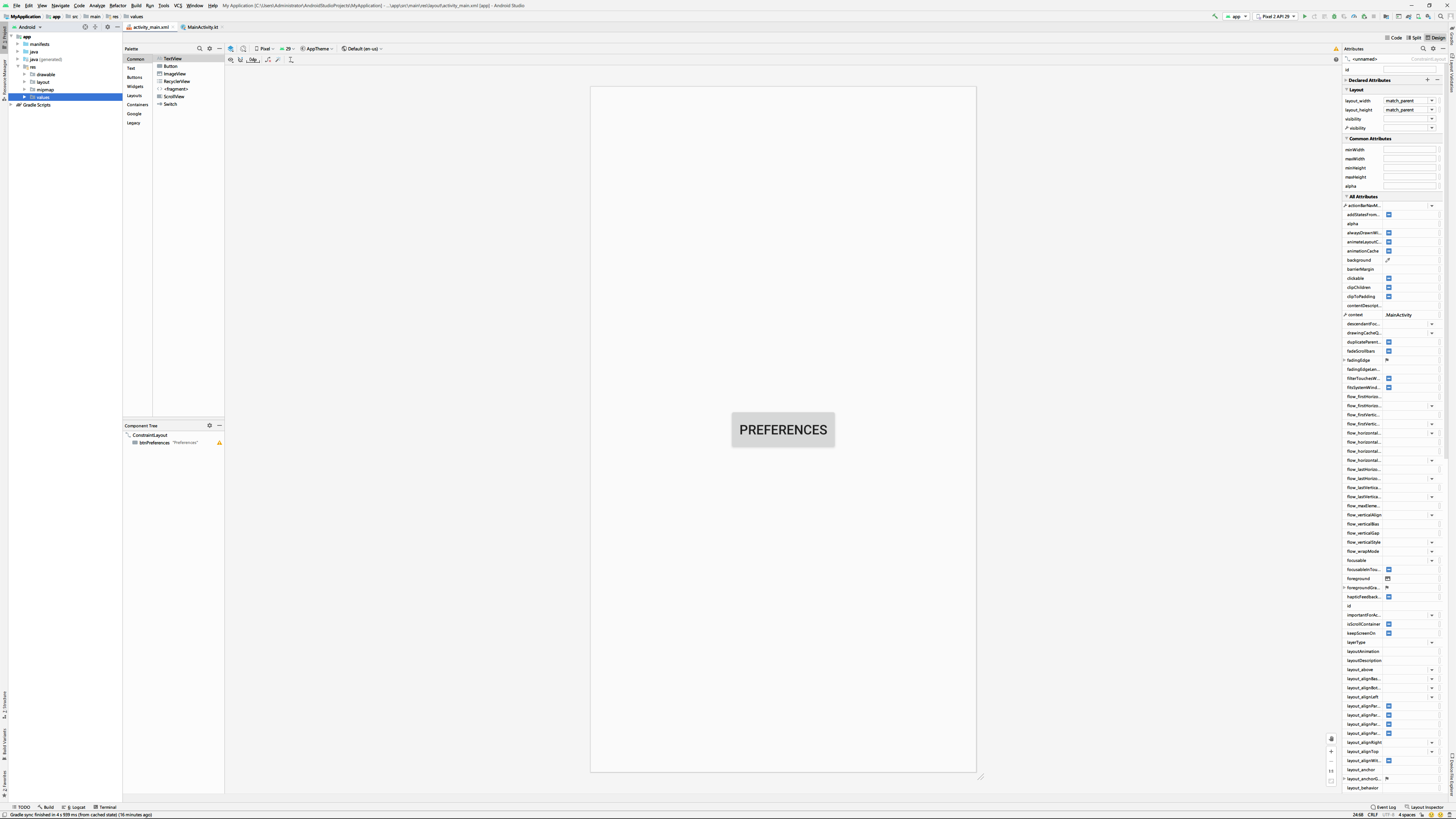 Preferences를 알아보기 전에 우선 Activity화면에서 아래와 같이 버튼 하나를 추가합니다.