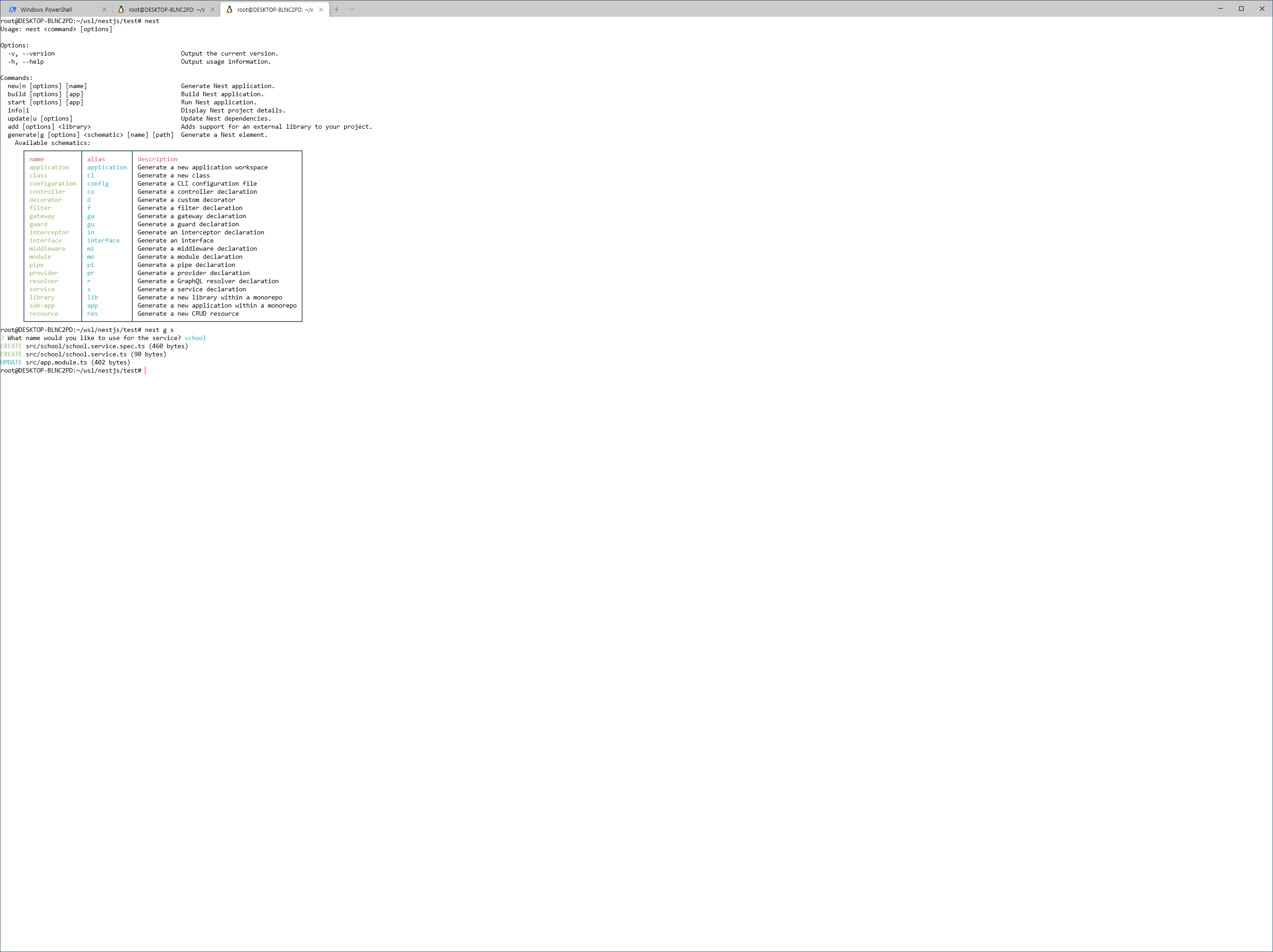 | nest g s |
