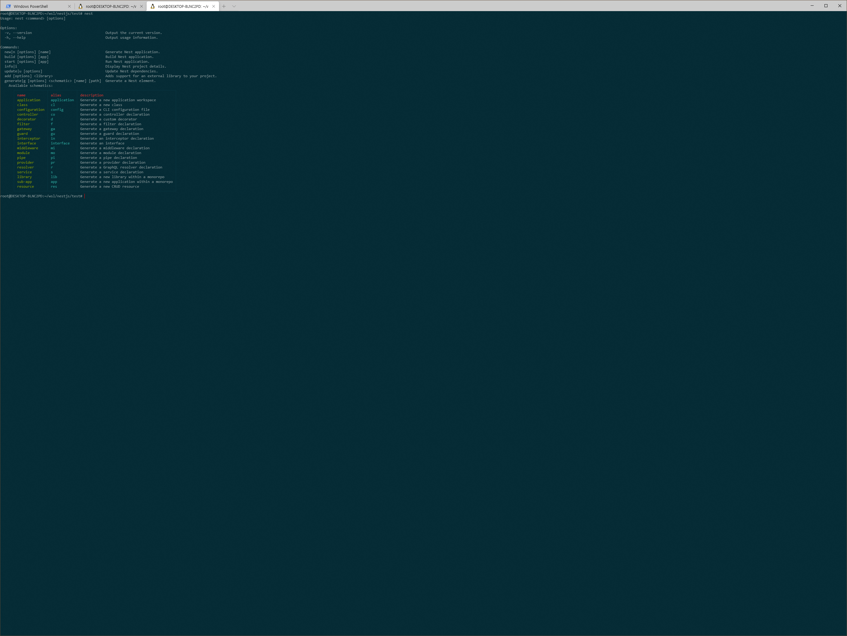 우선 nest명령을 내려보면 위와 같이 설치 가능한 항목이 나열되는데 이를 통해 어떤 형태로 명령을 내릴 수 있는지 확인할 수 있습니다.