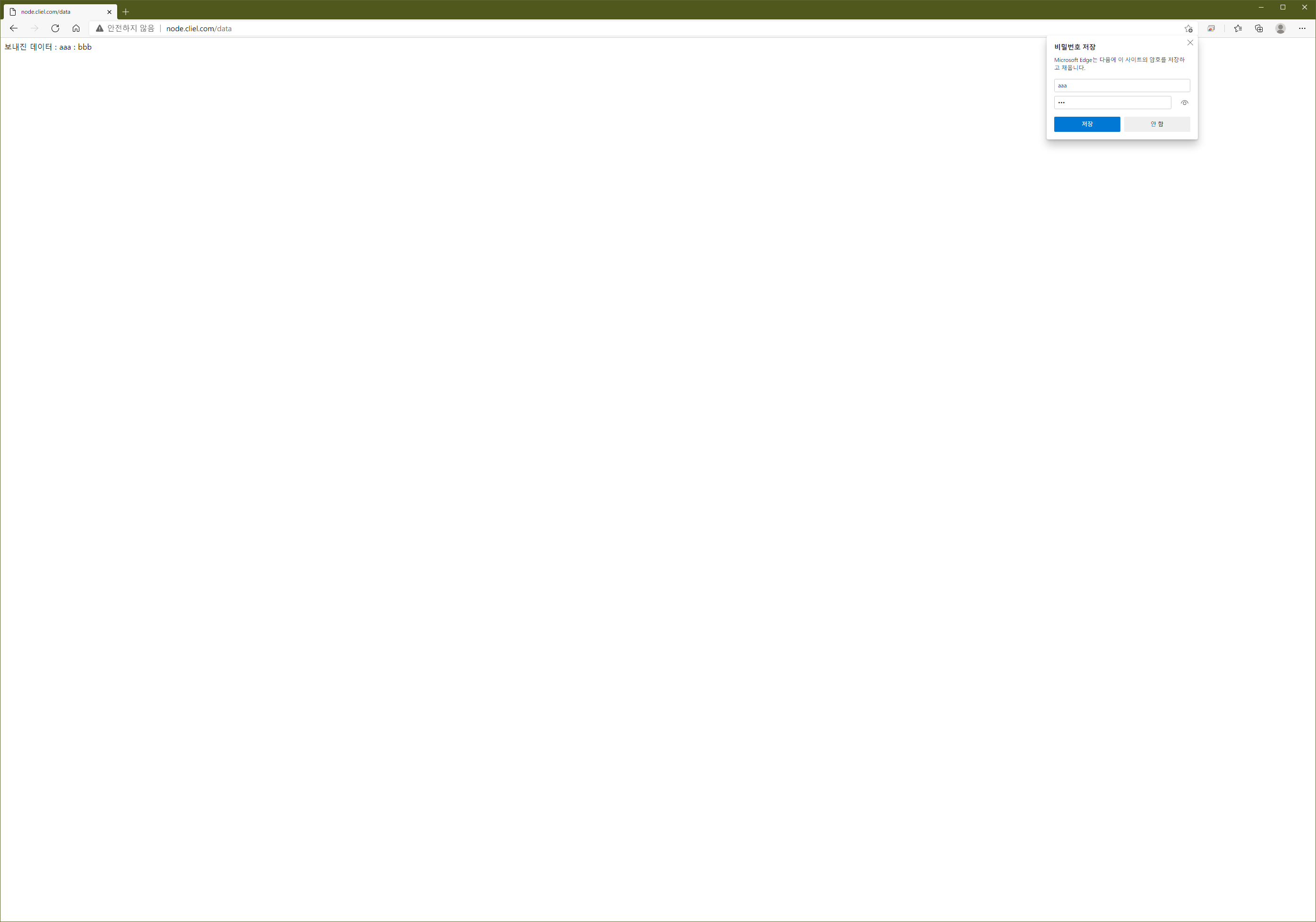사용자가 '확인'버튼을 누르면 /data URL로 id값과 pw값을 보낼 것입니다.