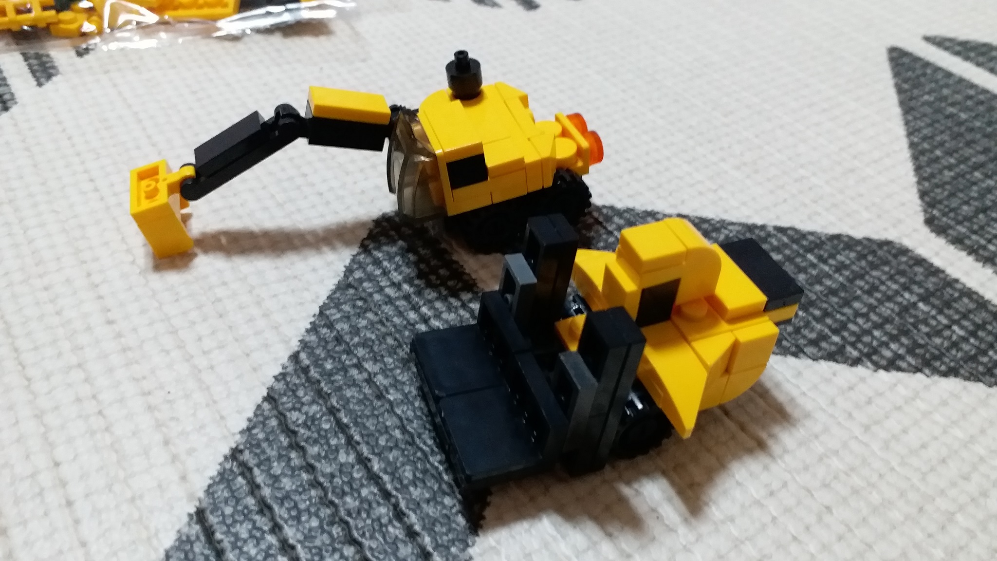 짜잔.. 지게차를 비롯해 굴 찾기 등 몇 개를 조립해 보았습니다. 참고로 블록에 붙이라고 스티커도 동봉되어 있었습니다.