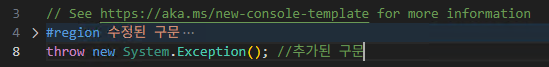 code를 Region하려면 묶고자 하는 code의 위에 '#region [명칭]'을 사용하고 code의 맨 아래에는 #endregion을 사용합니다.