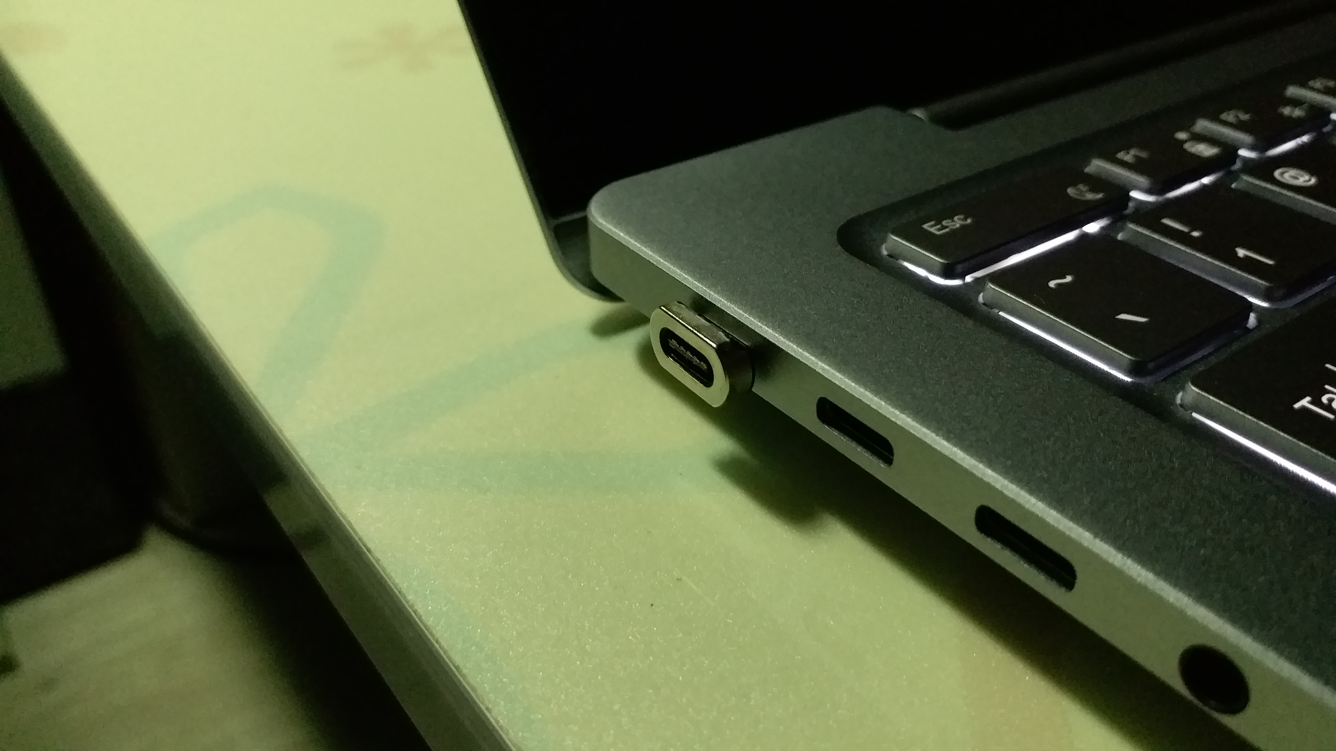 이렇게 노트북 배터리에 신경 쓰다 보니 자연스럽게 노트북에 충전 케이블을 연결했다가 다시 빼는 과정을 반복하게 됐습니다. 자석 충전 케이블을 사용하기로 마음먹은 게 이때인데 자석 소켓은 계속 노트북에 연결해 놓고 충전 시에만 케이블을 붙여주면 되니 무리하게 힘을 주거나 하지 않아도 사용할 수 있어서 훨씬 부담이 덜합니다.