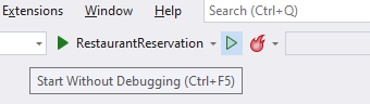 지금까지 모든 사항이 완료되었으면 Visual Studio의 'Start Without Debugging'을 눌러 프로젝트를 실행합니다.