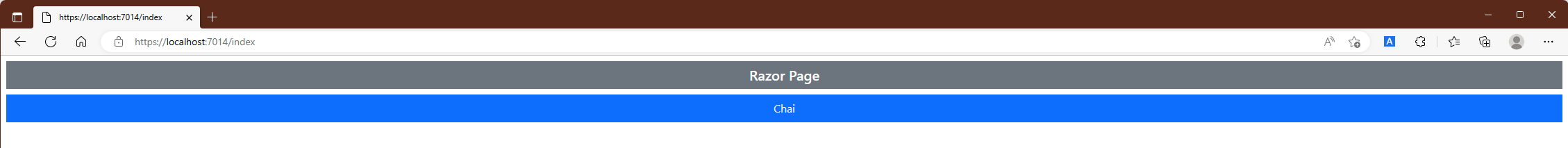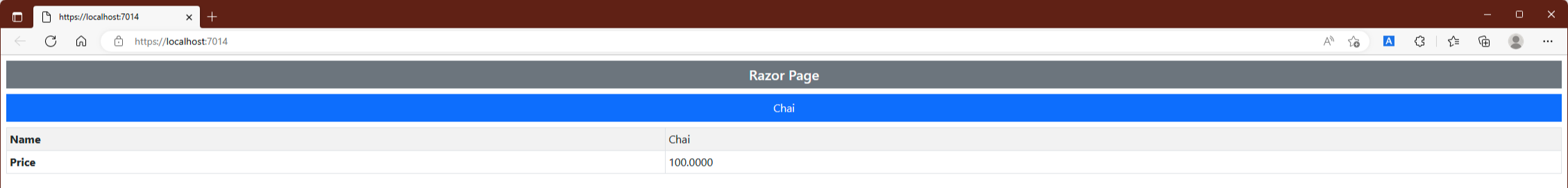 Razor Page가 응답을 처리할 때 partial view의 content가 응답에 포함됩니다. Project를 실행하면 다음과 같이 Partial View에서 정의된 Table이 응답에 포함되었음을 확인할 수 있습니다.