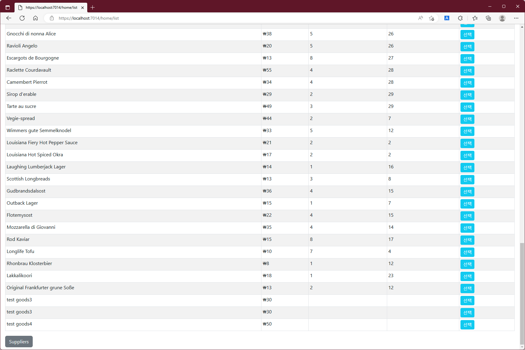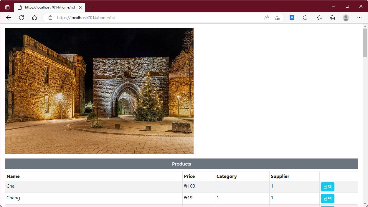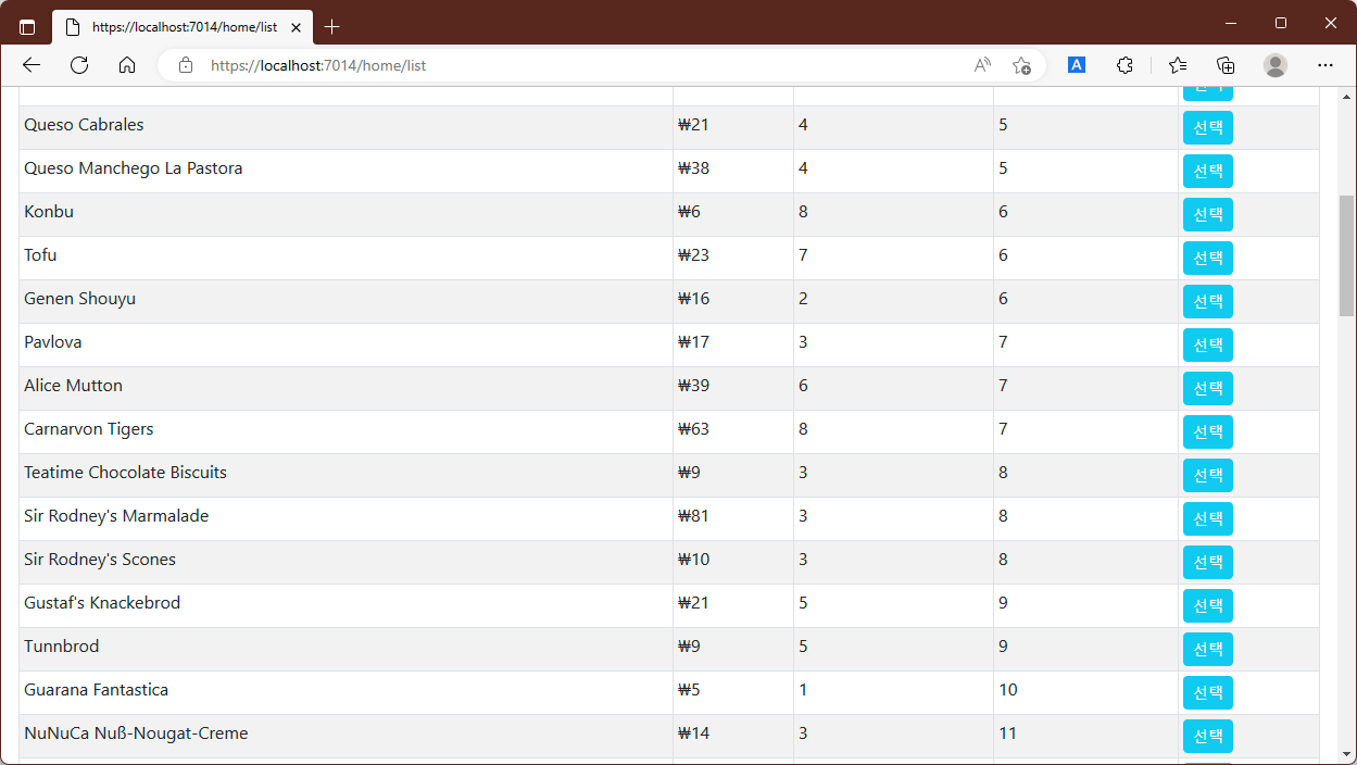 위 결과에서 select요소를 확인해 보면 각 href attribute가 Product개체의 ProductId값을 다음과 같이 포함한다는 것을 알 수 있습니다.