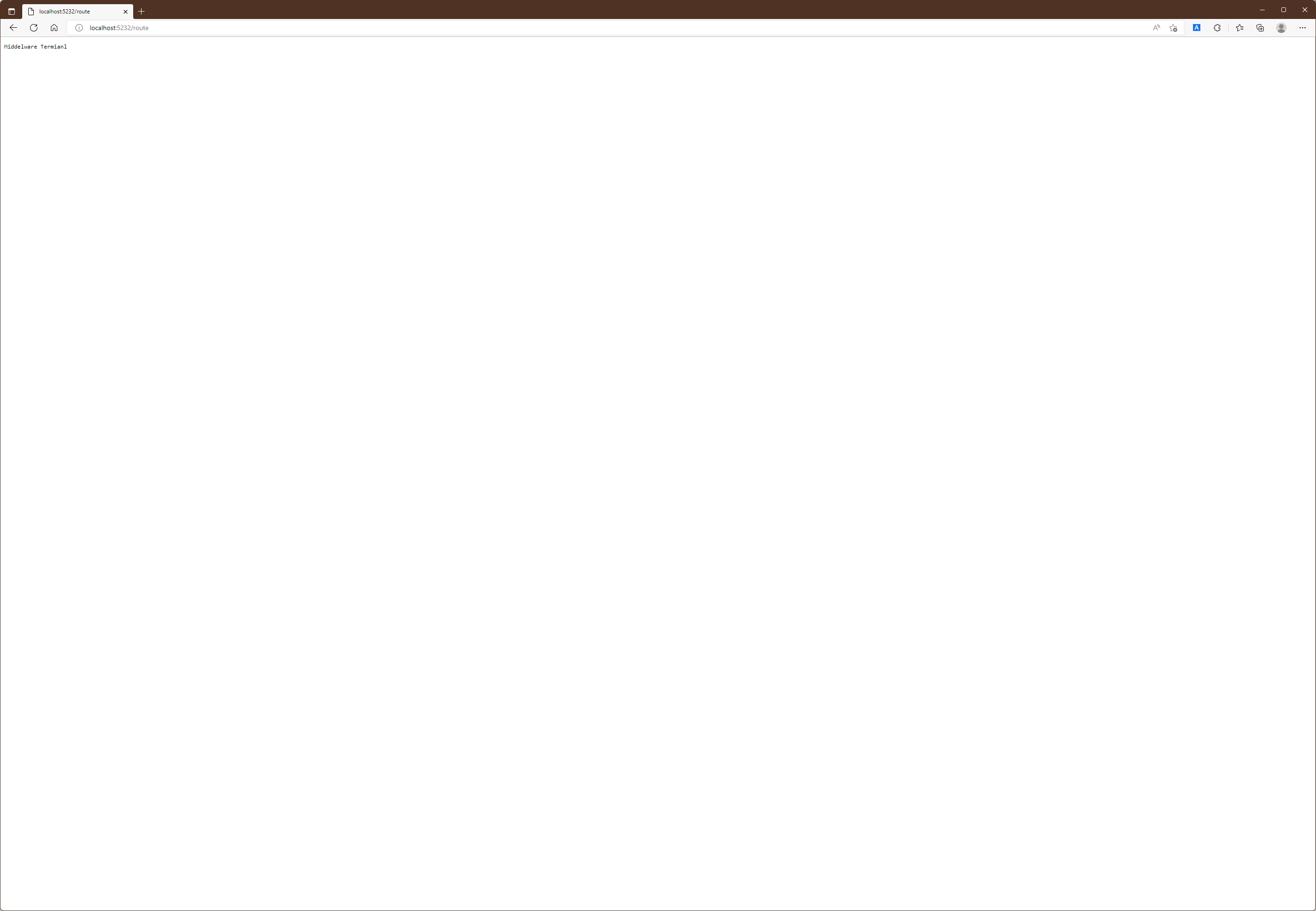하지만 요청 URL이 URL Pattern과 일치하지 않는다면 요청은 자연스럽게 다음 Pipeline에 존재하는 middleware component로 전달될 것입니다. 따라서 만약 요청을 /route와 같이 지정한다면 이 요청은 위에서 지정한 routing과 URL이 일치하지 않게 되므로 요청을 처리하기 위해 다음에 존재하는 Terminal Middleware로 요청을 전달함으로써 아래와 같은 결과를 보게 됩니다.