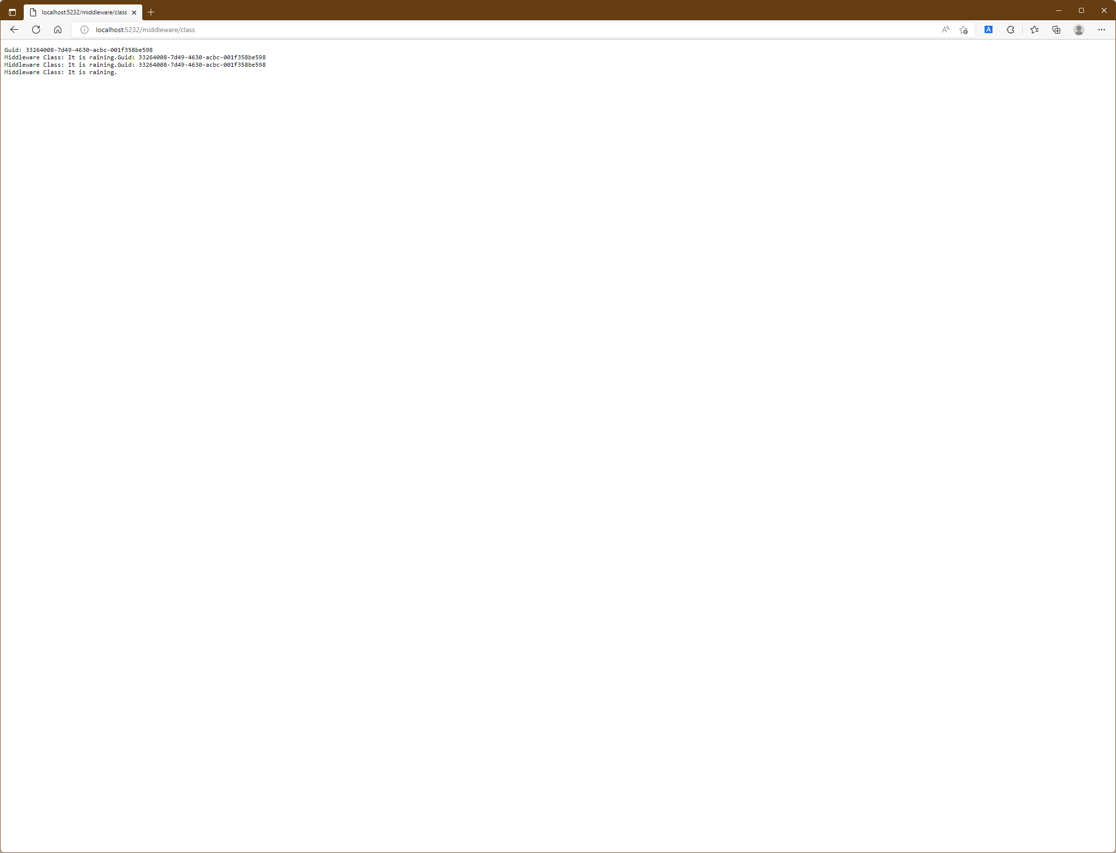 await context.Response.WriteAsync("Middleware Class: It is raining.");