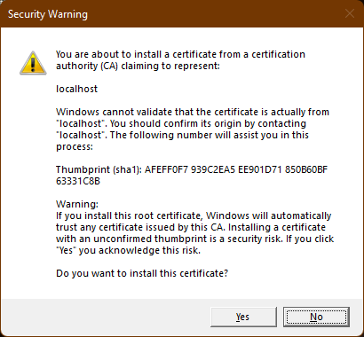 다만 HSTS는 사용에 주의가 필요한데 client가 Application에 접근할 수 없는 상황을 만들기 쉽기 때문입니다. 특히 HTTP와 HTTPS에서 비표준 port를 사용하는 경우에는 더욱 그렇습니다. 만약 server이름이 myweb인 곳에 Application이 배포되었다고 가정한다면 사용자는 http://myweb:5000과 같은 URL을 요청할 수 있고 Browser는 https://myweb:5100으로 redirect한뒤 HSTS Header를 보내는 정상적인 동작을 수행할 것입니다. 그러나 다음 사용자가 다시 http://myweb:5000으로의 요청을 시도한다면 보안 연결이 성립될 수 없다는 Error를 보게 될 수 있습니다.