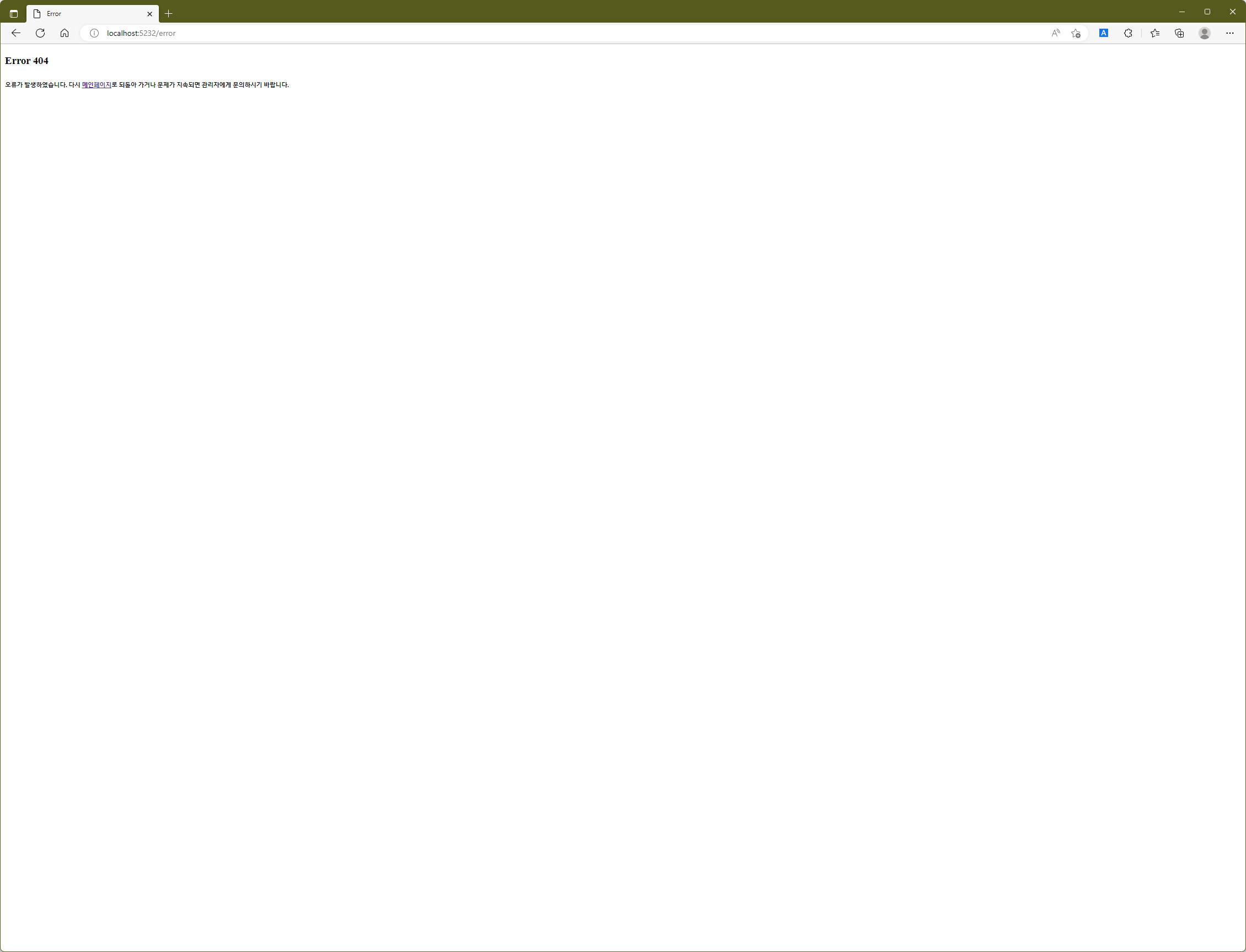 Project를 다시 실행하면 이전에 오류 code만을 표시하는 대신 위에서 추가한 HTML Page를 Error화면으로 표시할 것입니다.