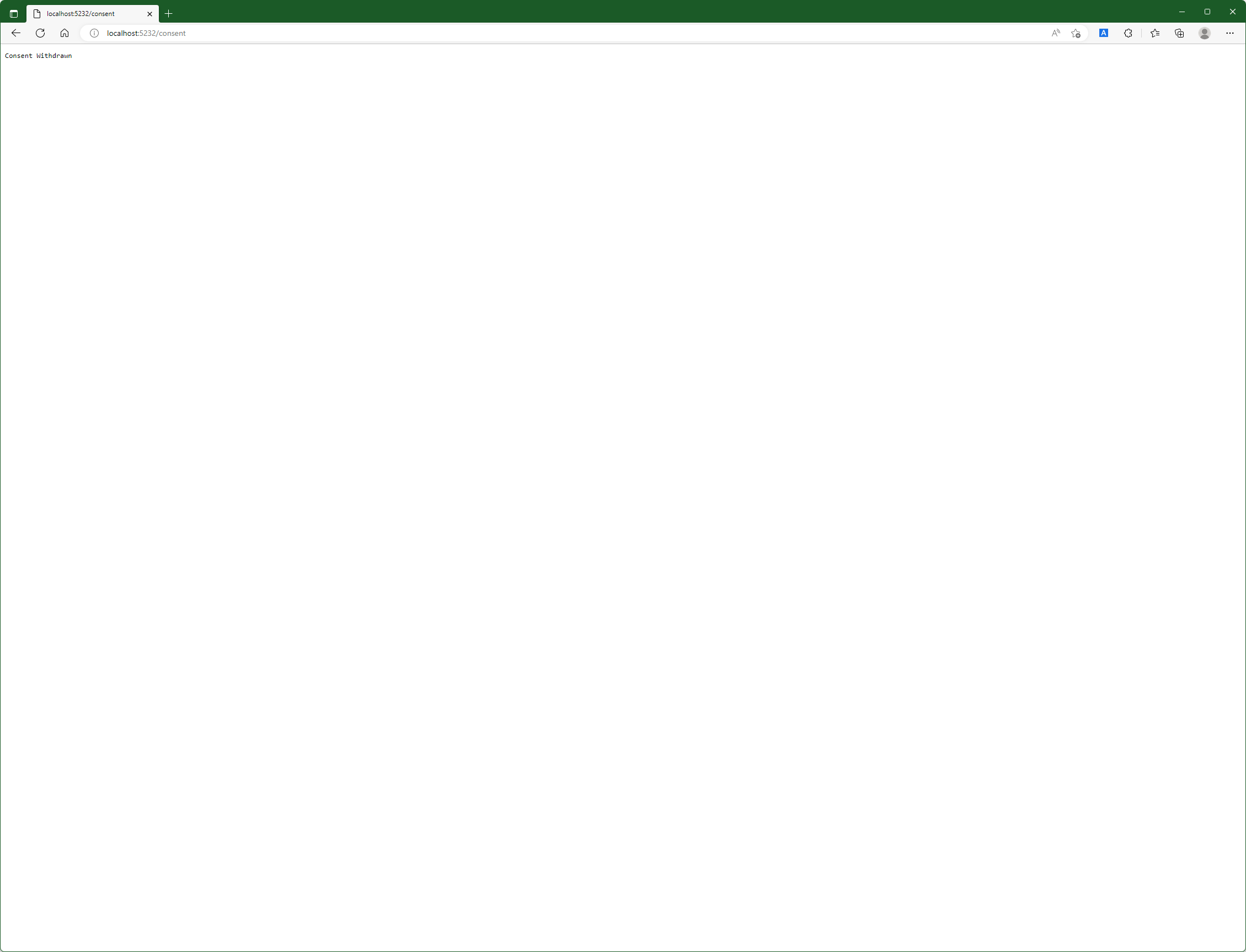 await context.Response.WriteAsync(consentFeature.HasConsent ? "Consent Granted \n" : "Consent Withdrawn\n");