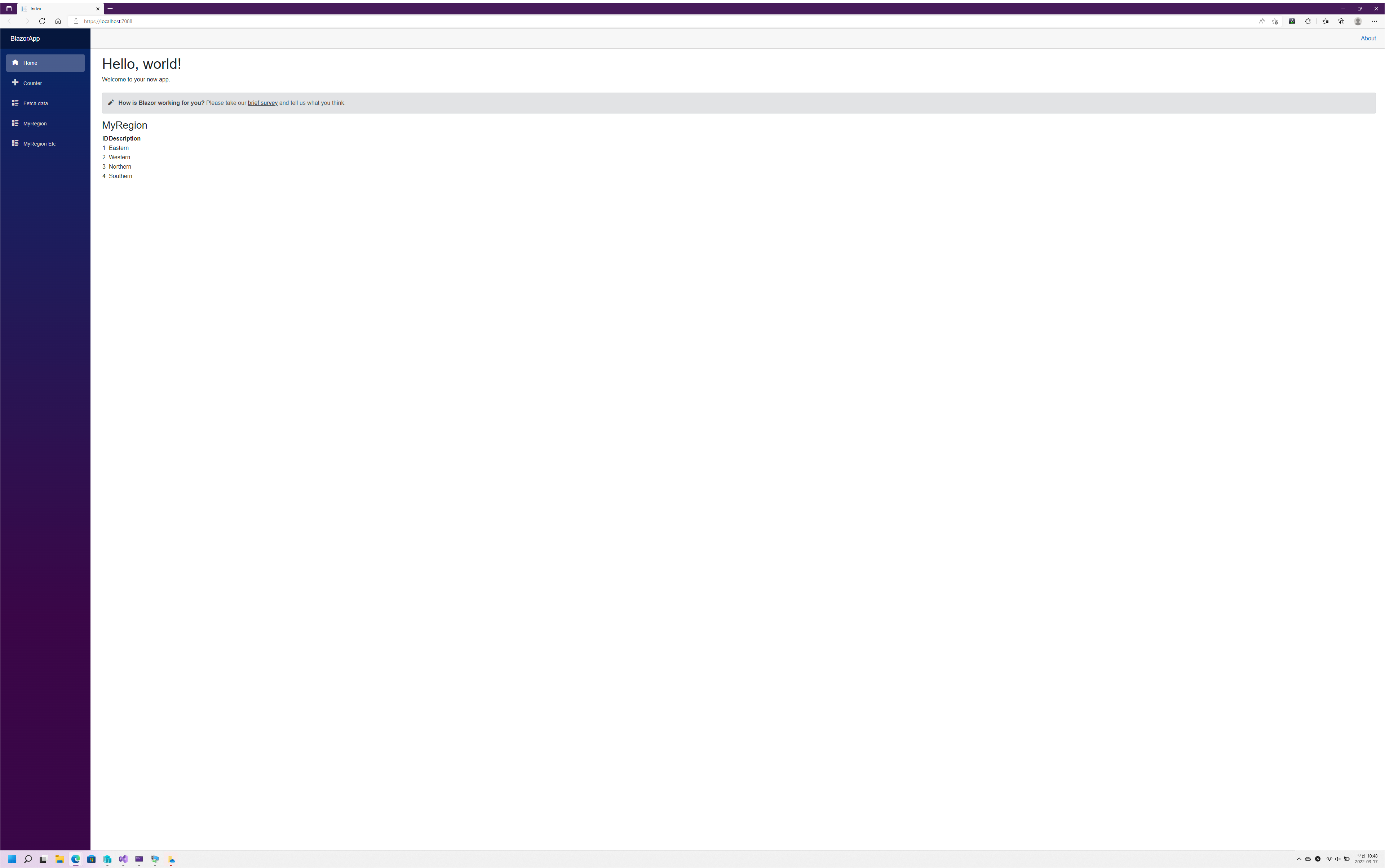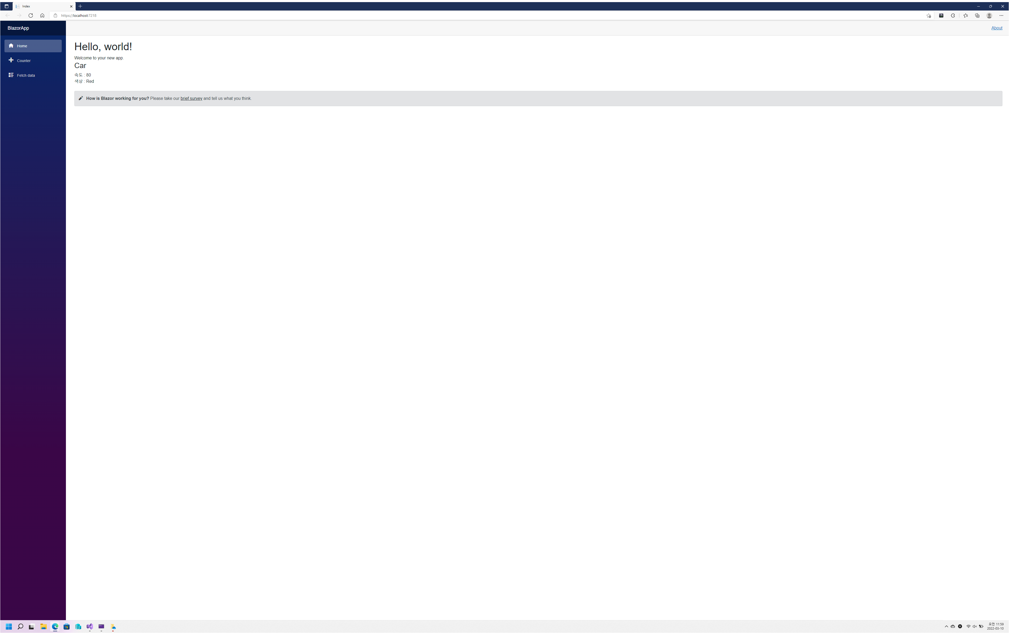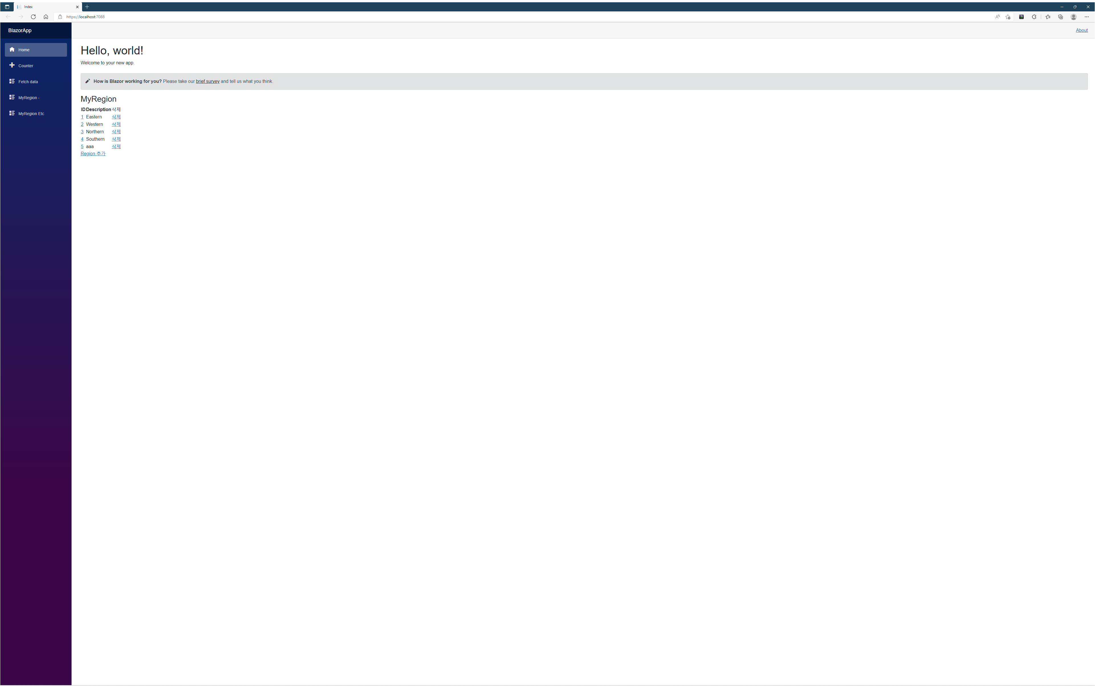 프로젝트를 테스트하려면 WebAPI를 먼저 구동시키고 그 다음 BlazorApp프로젝트를 실행하면 결과를 확인할 수 있습니다.