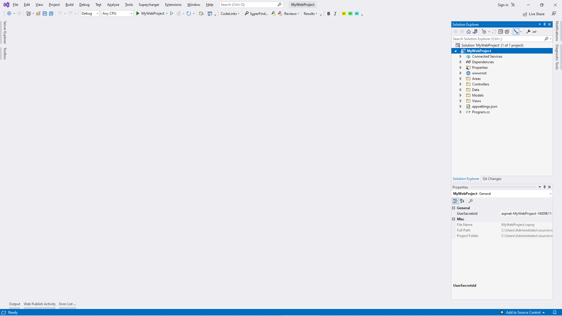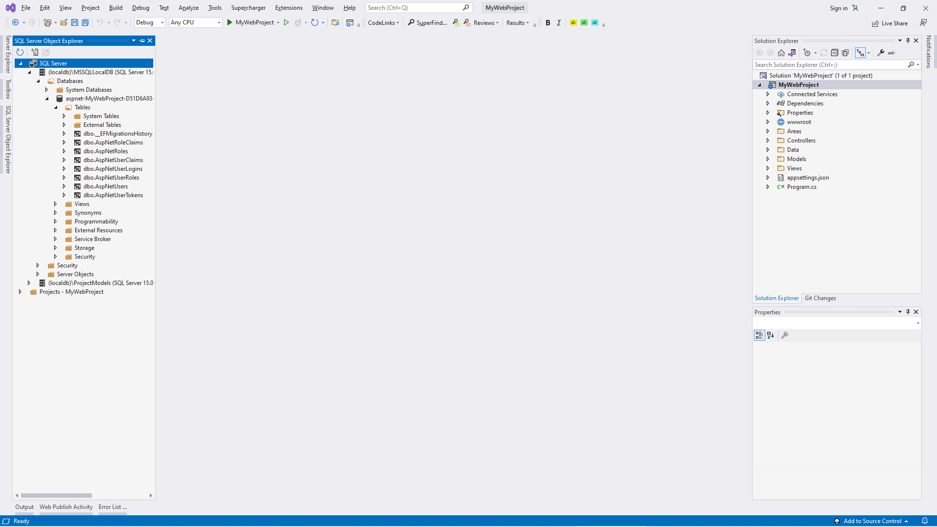 "DefaultConnection": "Server=(localdb)\\mssqllocaldb;Database=aspnet-MyWebProject-16009E11-84BE-44DC-8B7C-A5A758B3AB36;Trusted_Connection=True;MultipleActiveResultSets=true"