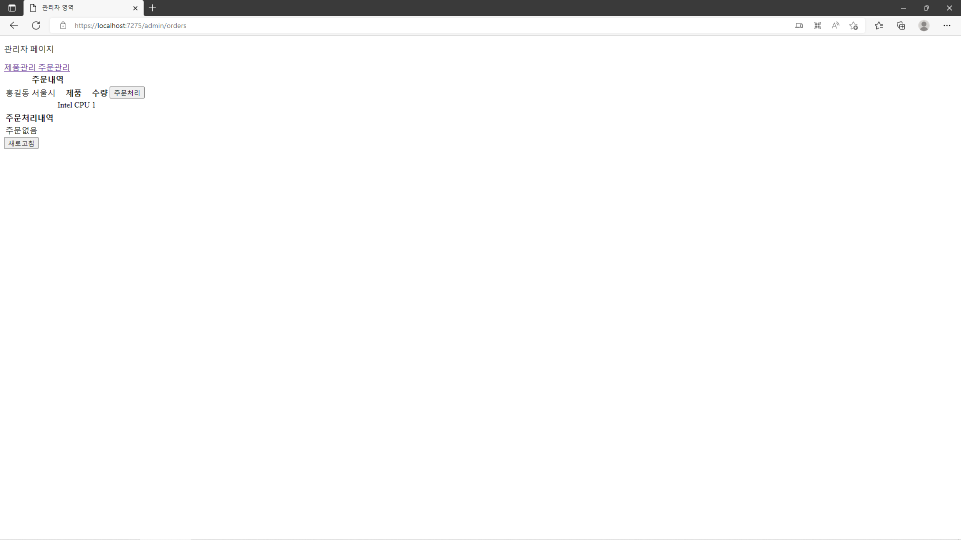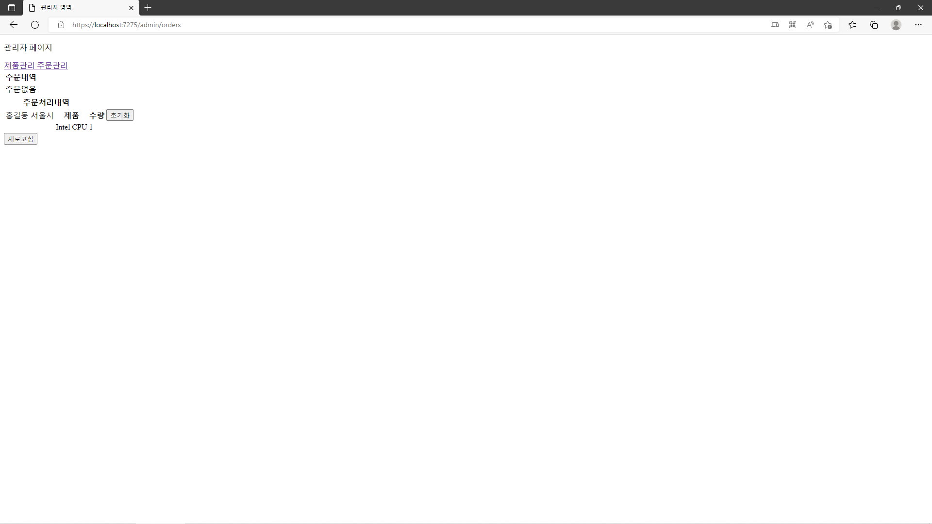 위와같이 Project를 실행하고 '주문관리'를 눌러보게 되면 Orders.razor에 따라 '주문관리'를 화면에 표시합니다. 여기서 주목해야 할 점은 분명 다른 page로의 전환을 시도했지만 그에 맞는 HTTP 요청을 발생시키지 않고 일반 응용 program처럼 그대로 화면 전환이 이루어졌다는 것입니다.