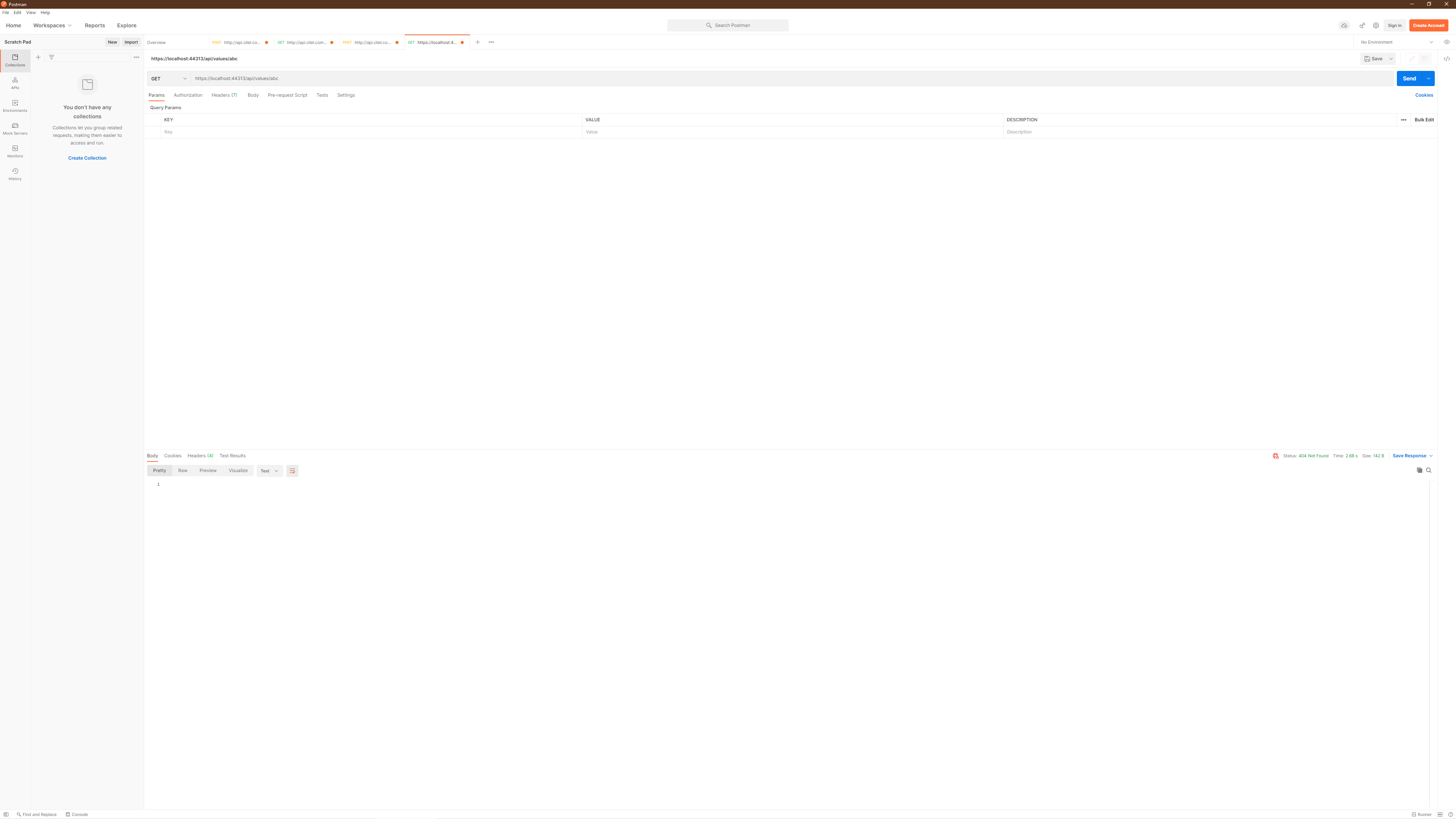 만약 URL을 /api/values/abc처럼 호출한다면 매개변수의 데이터가 int형이 아니므로 Get(int id) 메서드는 해당 요청을 받을 수 없고 매개변수가 없을 때의 메서드는 존재하지만 int형이 아닌 다른 형식의 매개변수를 받은 메서드는 존재하지 않으므로 결국 요청을 처리할 메서드가 없게 됩니다.