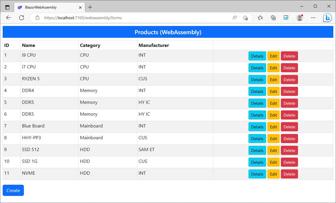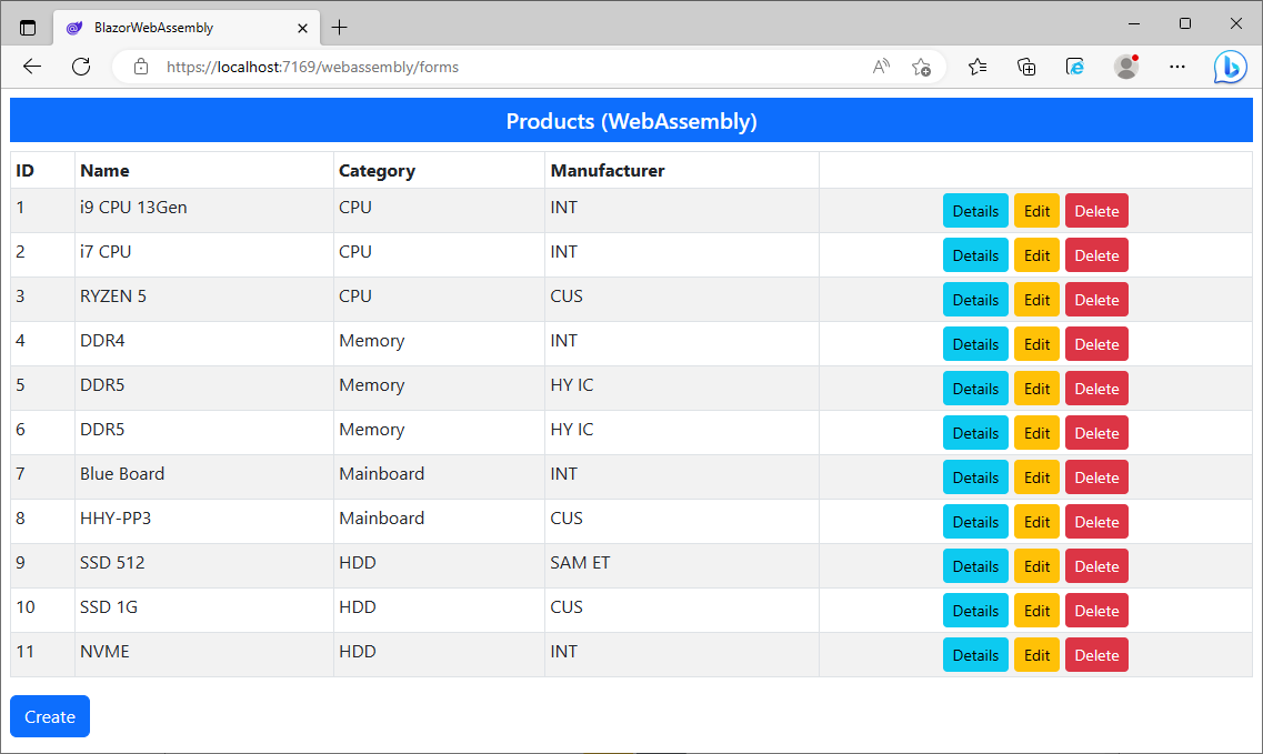 현재는 List component에 표시된 Delete button만이 작동하기 때문에 필요한 component를 추가함으로써 Blazor WebAssembly form application을 완성할 것입니다.