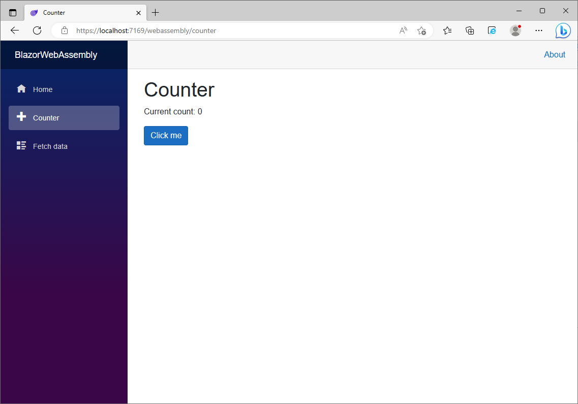 project를 실행하고 /webassembly로 URL을 요청하면 다음과 같이 BlazorWebAssembly project생성에 사용된 template의 placeholder content를 보게 될 것입니다.
