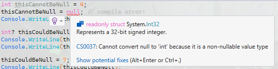 Console.WriteLine(format: "Key {0} has value: {1}", arg0: key, arg1: lookupIntString[key]);