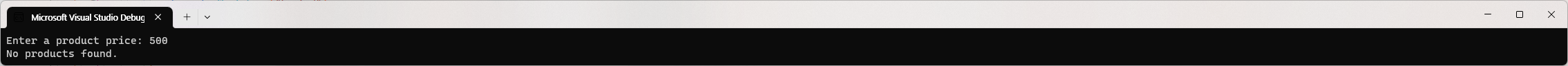 Console.WriteLine("No products found to delete.");