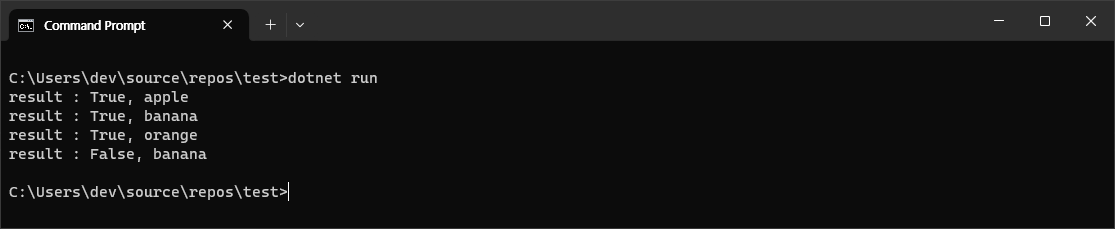 예제를 실행하면 아래와 같이 표시할 것입니다. NewGuid method는 random한 값을 생성합니다.