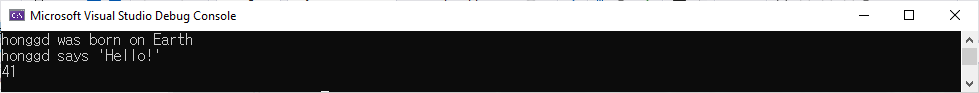 예제를 보면 ToString이라는 method를 호출하고 있는데 실제 Person class를 보면 아무것도 존재하지 않습니다. 그럼 어떻게 ToString method가 사용될 수 있을까? 이런 것이 가능한 이유는 잠시 후 알아보기로 하고 일단 project를 실행하여 아래와 같은 결과가 표시되는지를 확인합니다.