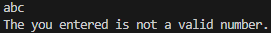 이번엔 다시 예제를 실행하고 숫자가 아닌 문자를 입력합니다. 그러면 결과를 약간 다르게 표시될 것입니다.
