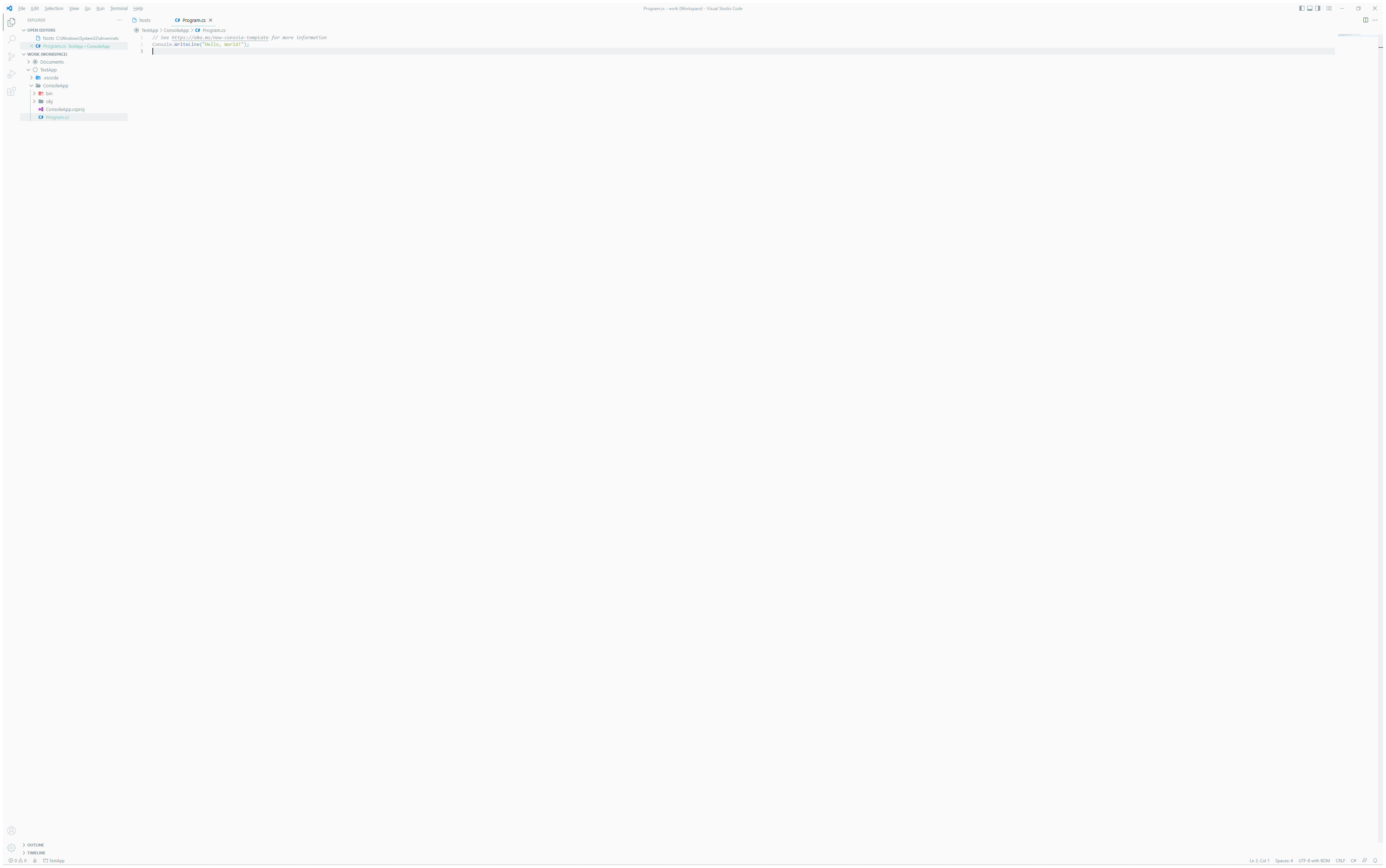 C# 언어를 사용해 보기 전 간단한 Console App프로젝트를 생성하고 Visual Studio Code를 사용해 Program.cs를 열어보는 것으로 시작해 보겠습니다.