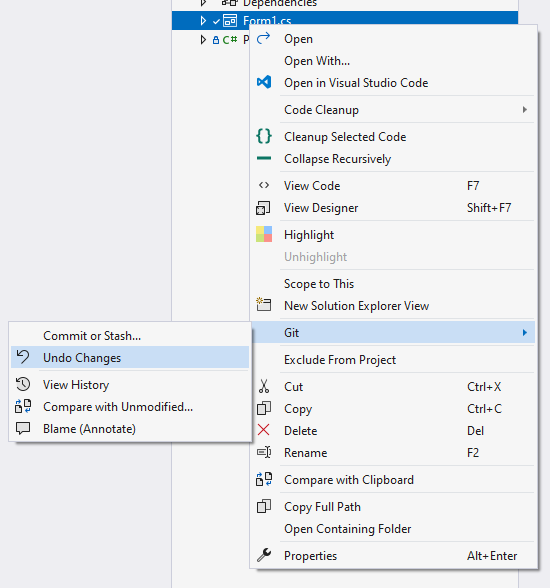 해당 소스파일에서 마우스 오른쪽 버튼을 눌러 'Git -> Undo Changes'를 선택하면 Commit이전의 상태로 돌릴 수 있습니다.