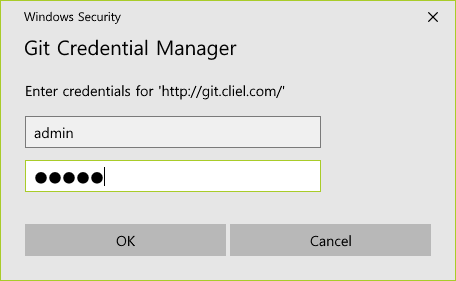 그리고 Create and Push를 클릭하면 잠시 후 로그인을 요구하는 화면이 나오게 됩니다. git Server에서 Repository에 권한이 있는 적절한 계정을 넣어줍니다.