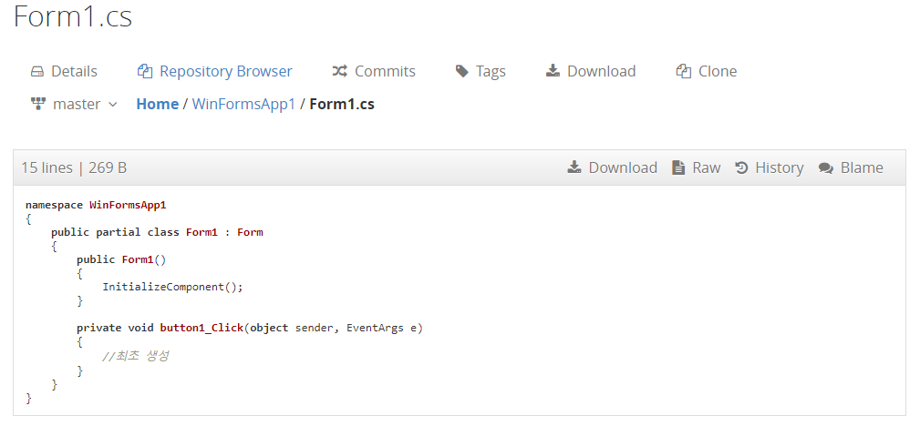 곧 소스코드가 Repository에 업로드된걸 알 수 있습니다. 이제 해당 프로젝트의 소스 관리를 시작하면 됩니다.