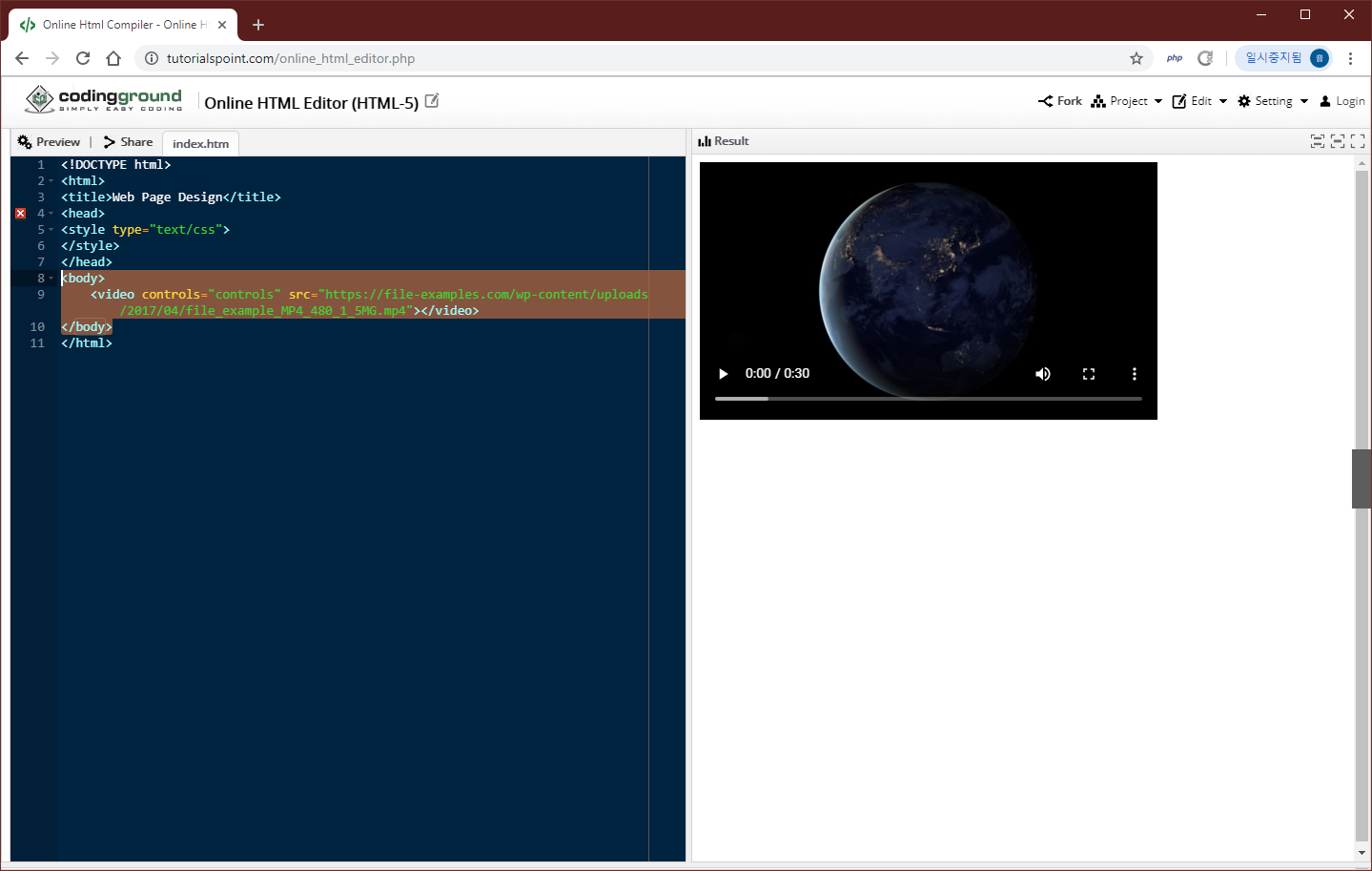 비디오 태그는 웹상에서 동영상을 재생할 수 있도록 하는 태그입니다.