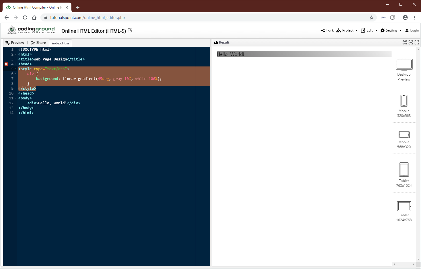 background: linear-gradient(45deg, gray 10%, white 100%);