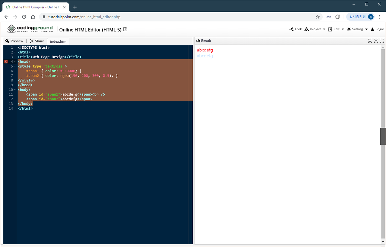 그러나 위와 같은 키워드 설정 말고도 숫자를 통해 색상을 더욱 정밀하게 조절할 수 있는데 이때 사용 가능한 색상 단위로는 첫 번째로 rgb가 있습니다. rgb는 순서대로 red, green, blue 색상을 의미하며 이들 각각의 색상값을 구분해서 지정합니다. 이때 각각의 값은 0부터 255까지 지정이 가능합니다.
