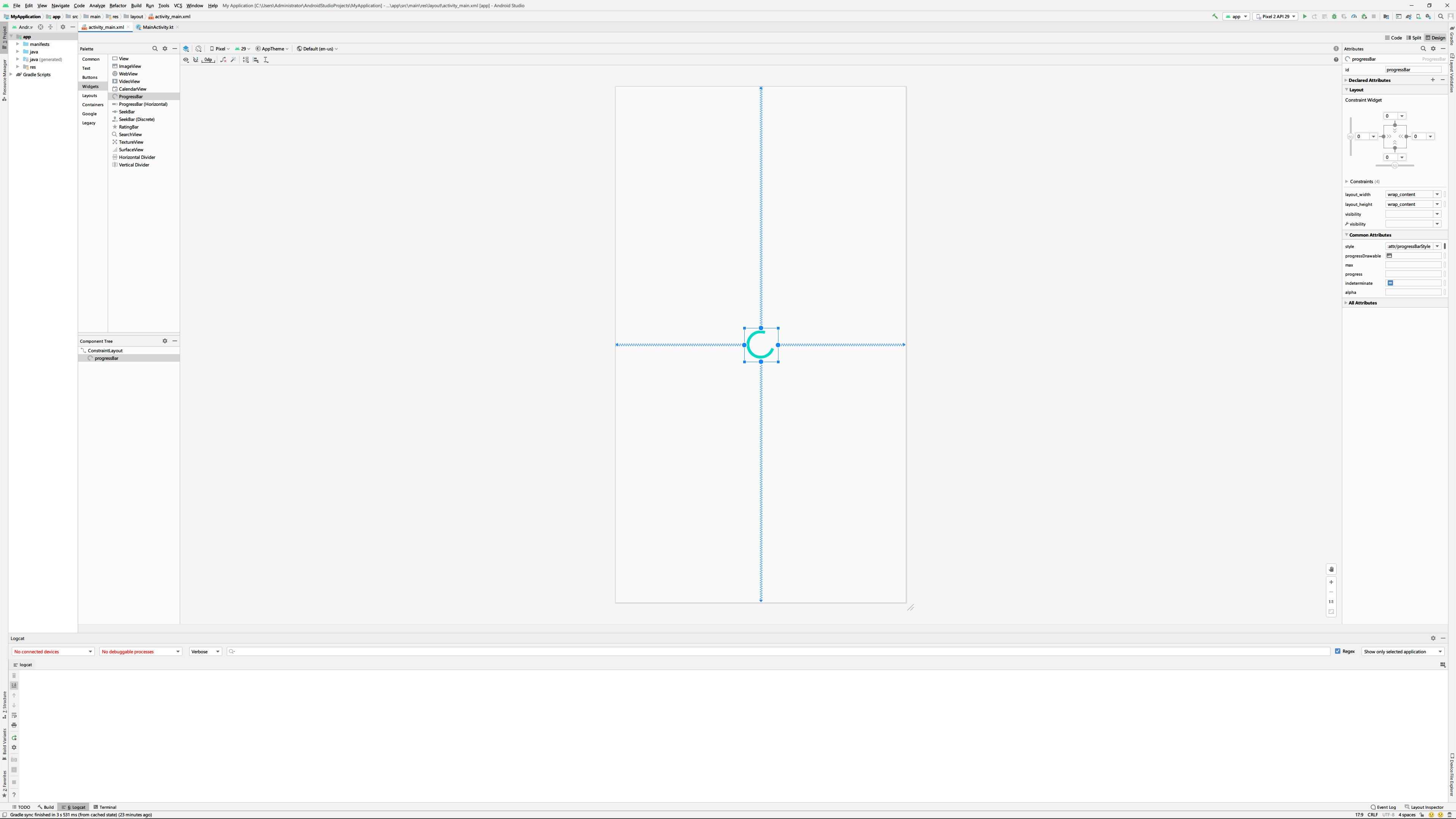 위와 같이 코드를 작성하고 앱을 실행시키면 3초 후에 ProgressBar가 사라지는 것을 볼 수 있습니다.
