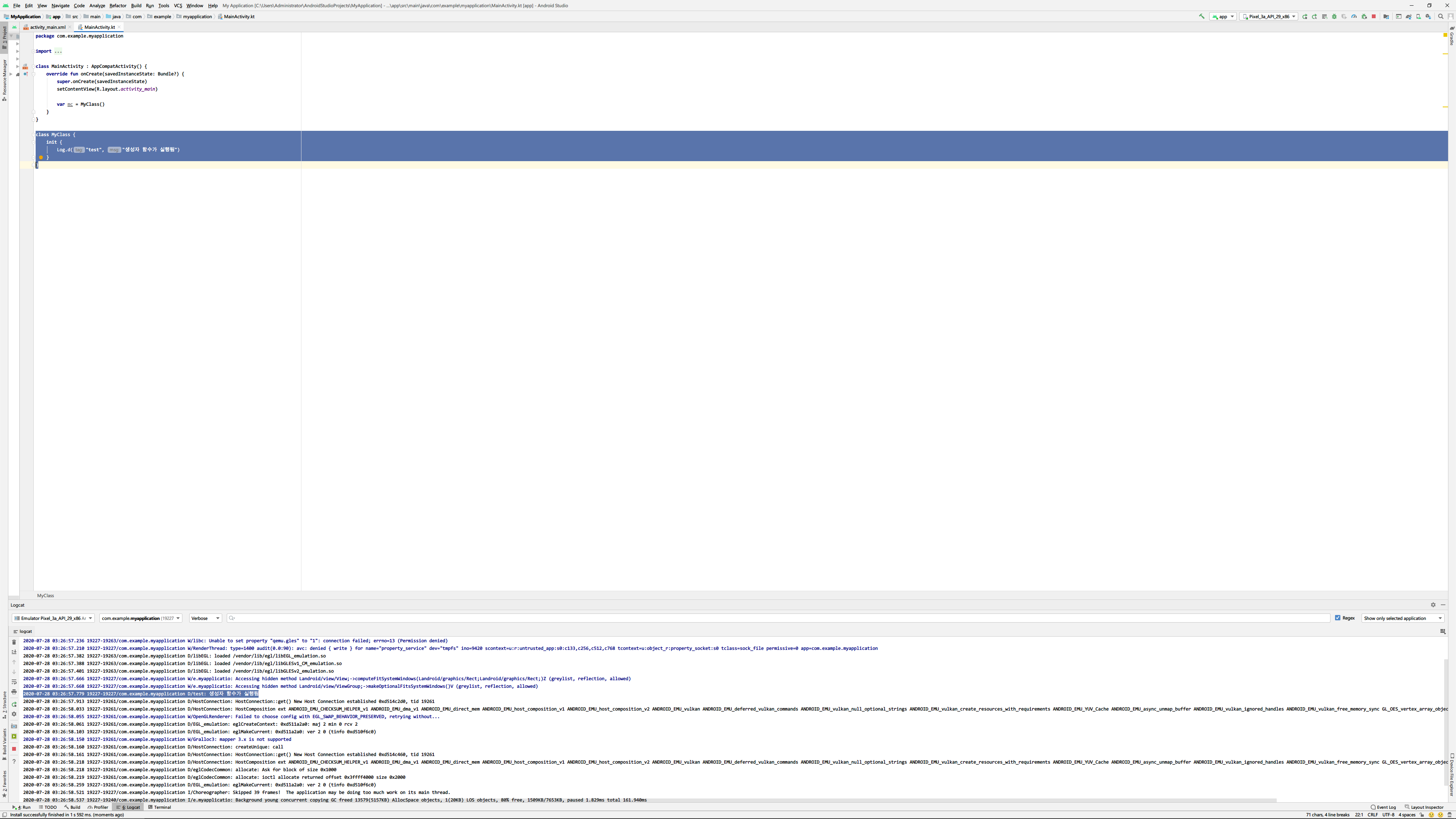 Log.d("test", "생성자 함수가 실행됨")