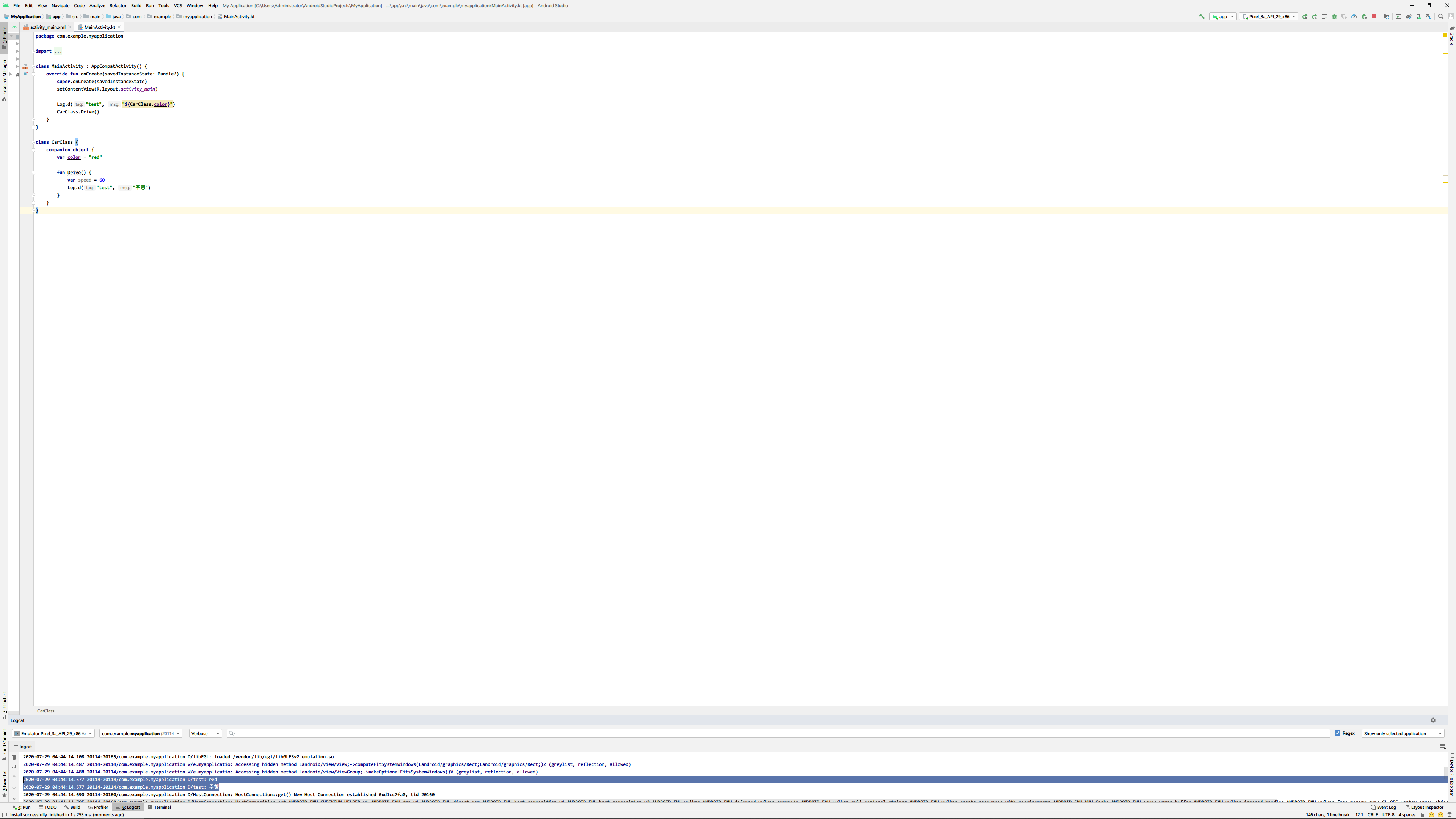 Log.d("test", "전달값 : ${myvalue}")
