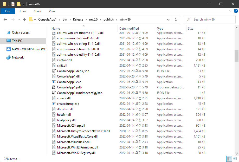 위와 같은 방식은 이전에도 언급하였지만 배포된 모든 파일을 Target시스템에 그대로 복사하는 경우 그 실행을 보장할 수 있다는 장점이 있습니다. 그러나 단 몇 kb밖에 되지 않는 Console App실행을 위해 수십에서 심지어 100MB 용량이 넘는 파일들을 같이 배포해야 한다는 단점 또한 존재하므로 상황에 따라 적절한 배포 방법이 선택되어야 합니다.