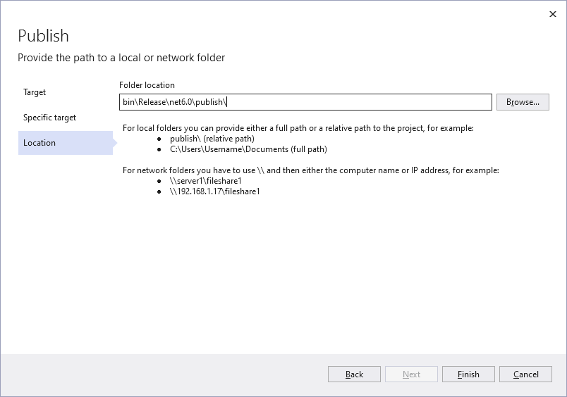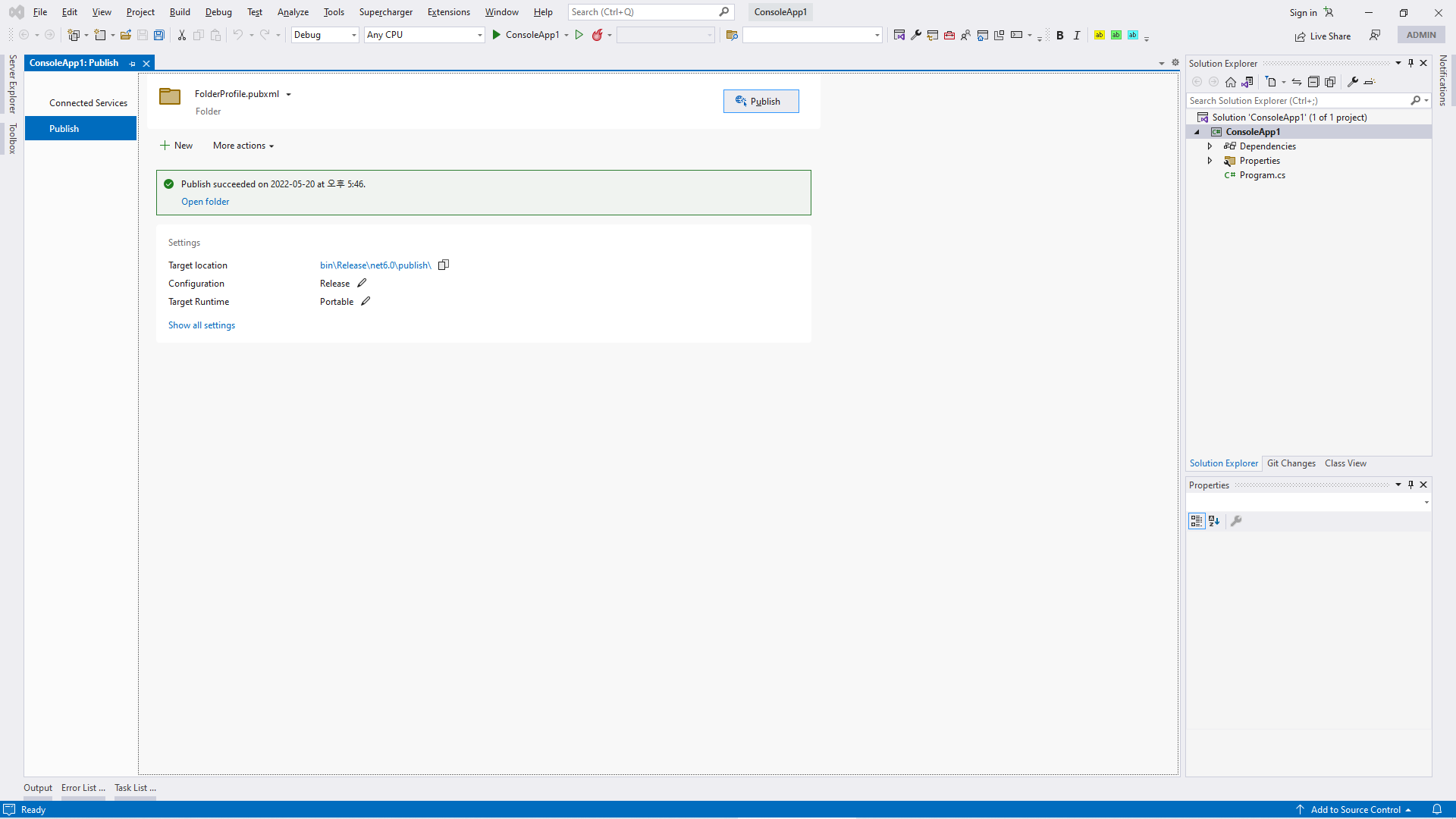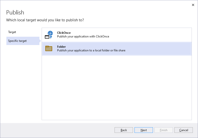 Visual Studio의 프로젝트에서 마우스 오른쪽 버튼을 눌러 배포로 들어간 다음 'Folder'를 선택합니다.