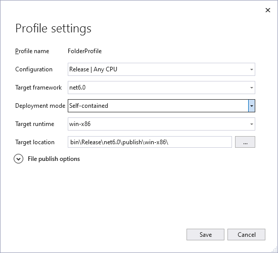 배포 설정 중 Deployment mode가 있는데 여기서 Framework-dependent의 설정을
