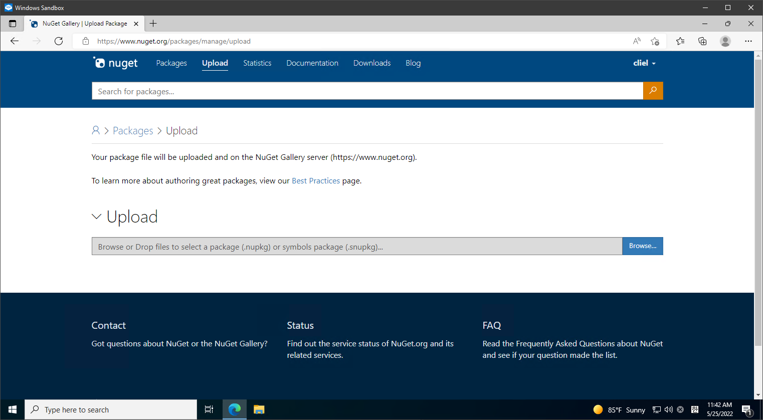 만들어진 Package를 다른 사람이 내려받아 사용하게 하려면 해당 Package를 'NuGet feed'로 업로드해야 합니다. 이를 위해 우선 웹브라우저를 열고 아래 주소로 이동합니다.