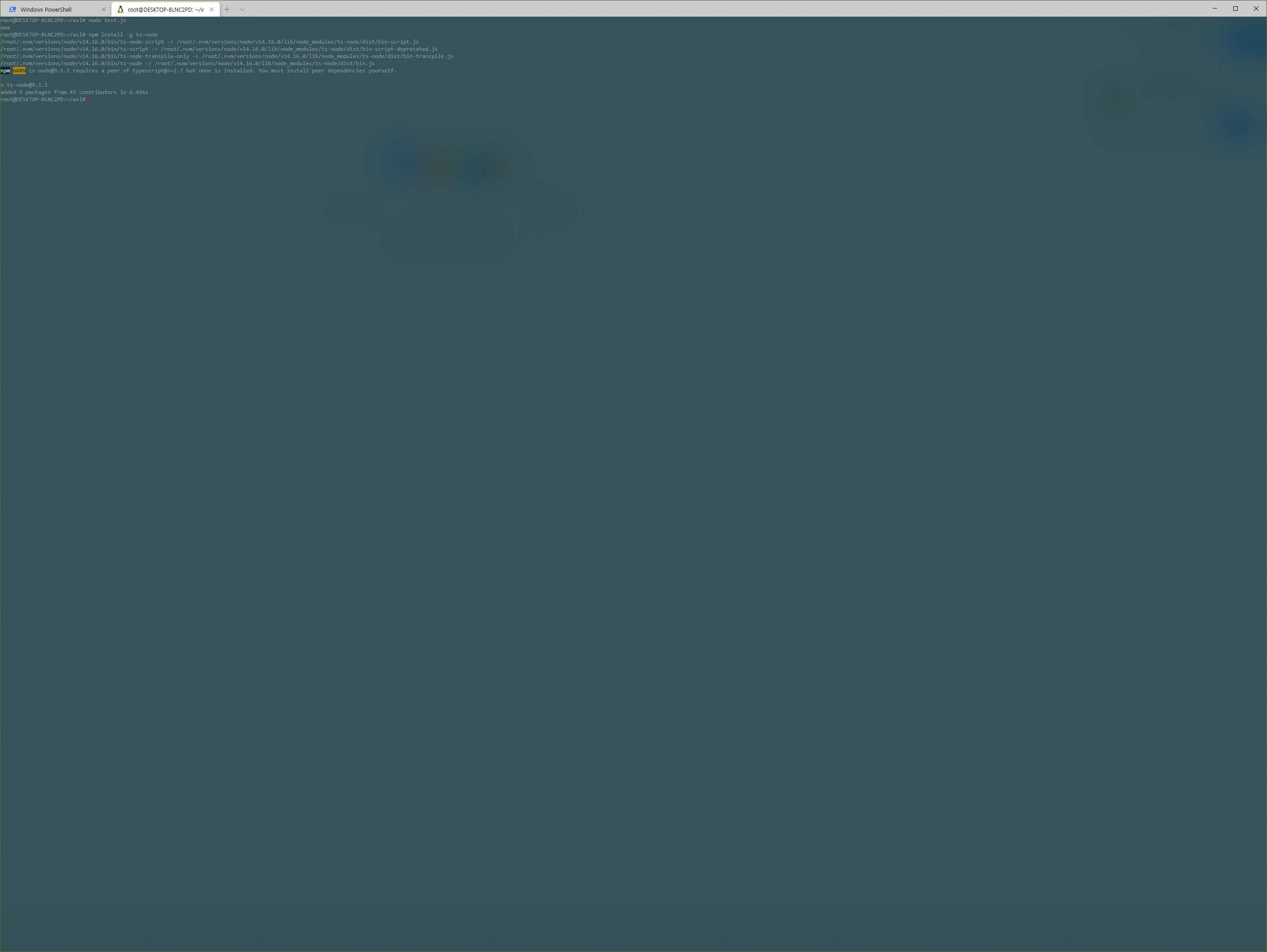 명령으로 ts-node를 설치합니다.