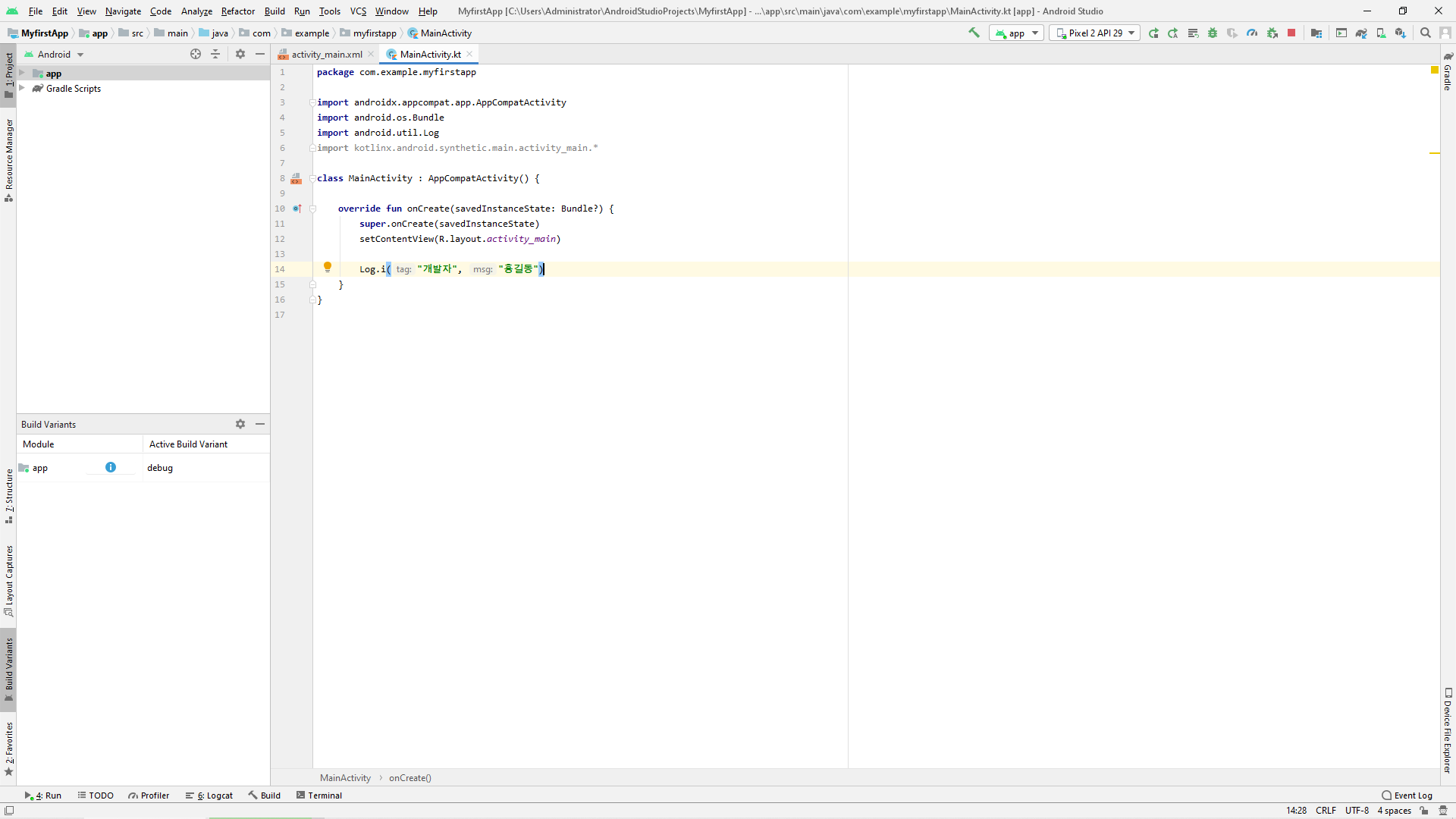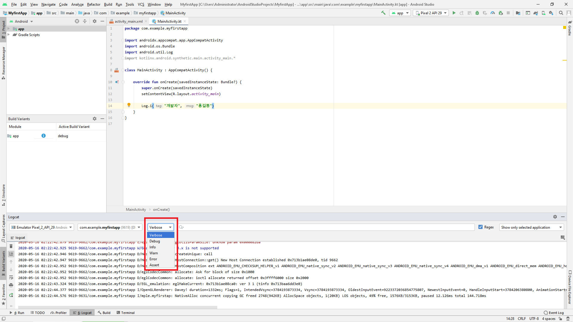 [Kotlin] Log(로그)와 Logcat(로그켓)