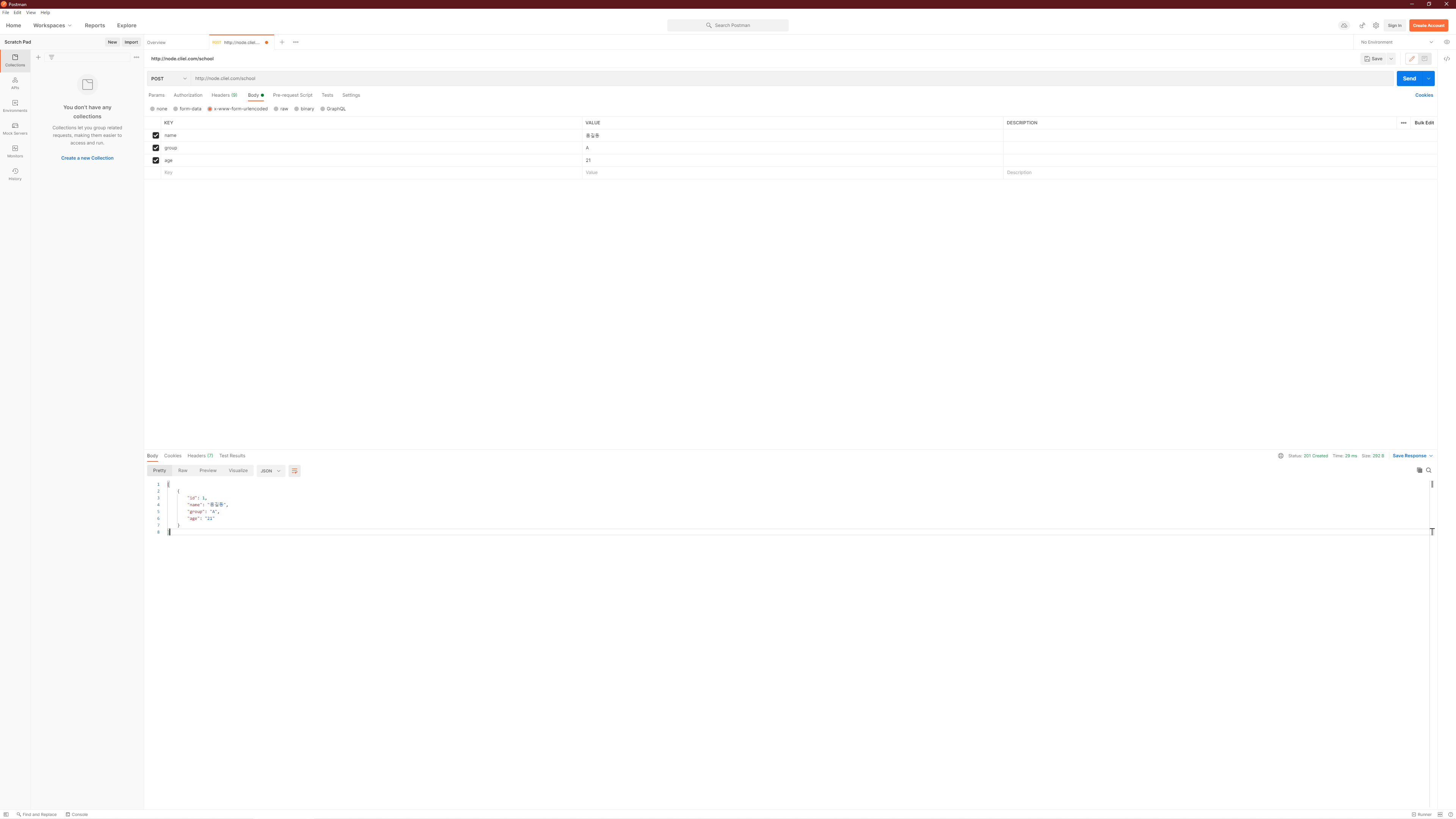 다음으로 프로젝트로 생성된 school디렉터리 안에서 model이라는 디렉터리를 새롭게 생성하고 해당 폴더 안에서 아래의 내용으로 stdent.model.ts파일을 작성합니다. 디렉터리 이름에서도 알겠지만 DB(예제에서는 배열) 사용을 위한 모델을 만들어 둘 것입니다.